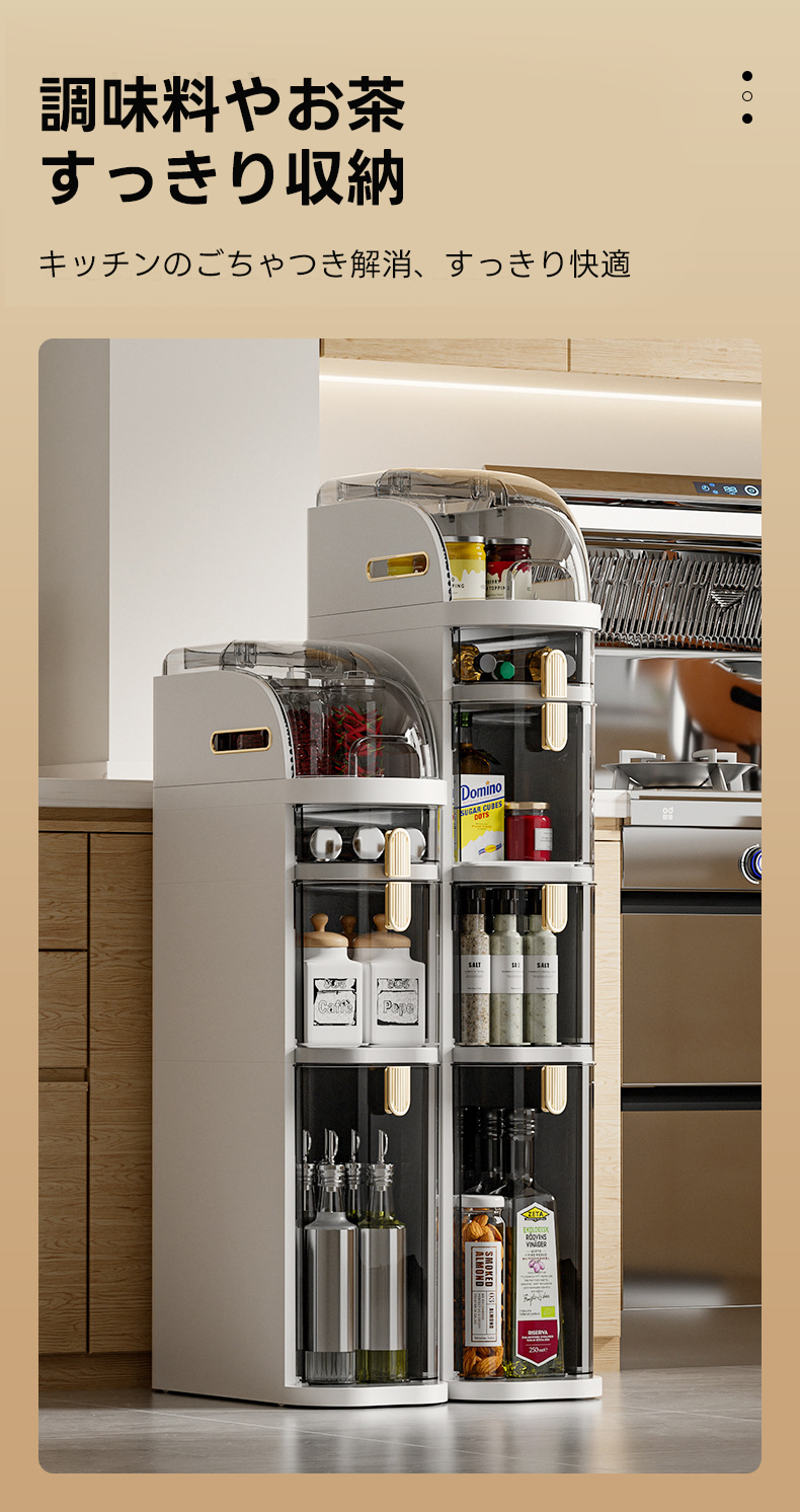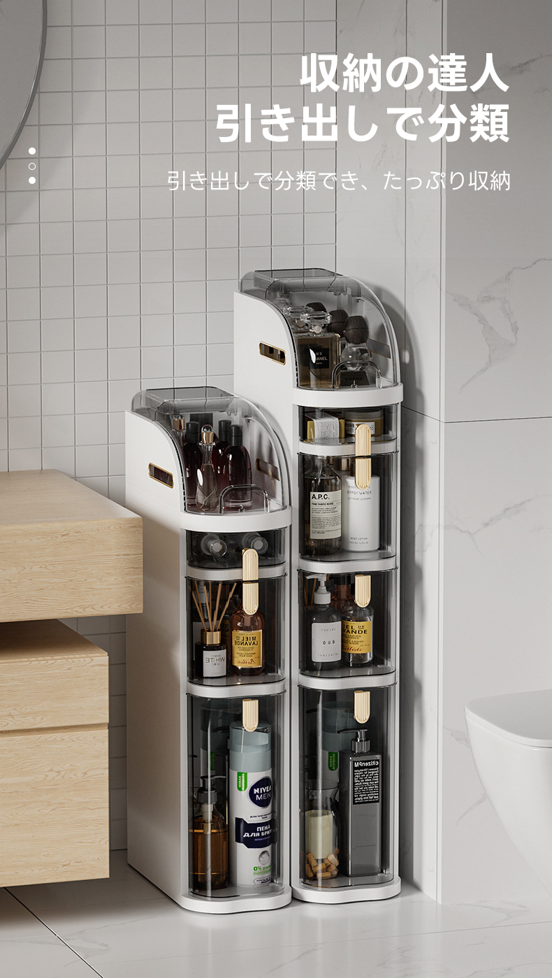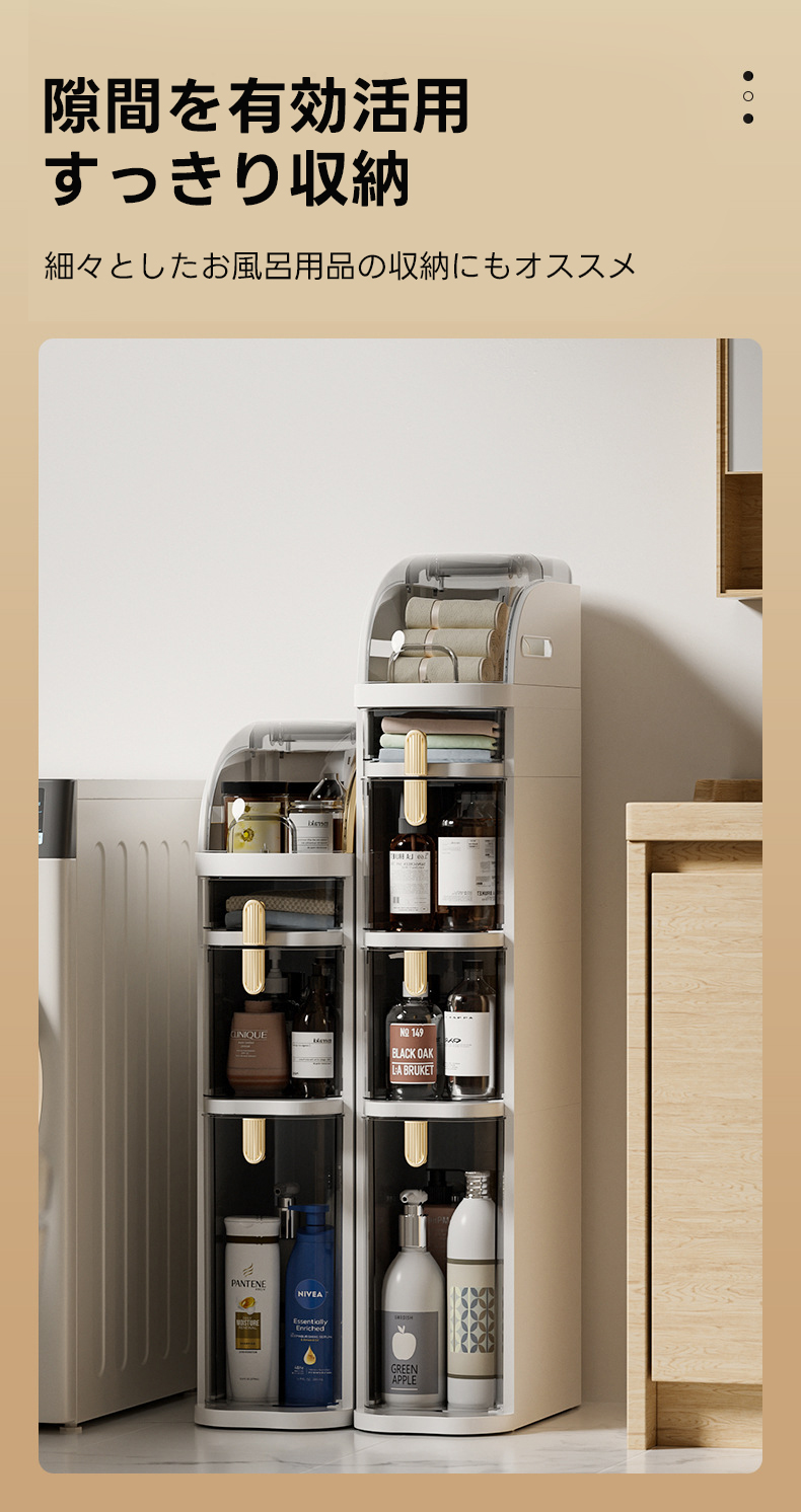 - 【多機能収納でスペースを有効活用】この隙間収納キャビネットは、調味料やバス用品などをすっきりと整理整頓できる多機能収納を提供します。狭いスペースでも最大限に活用できる設計で、キッチンやバスルーム、リビングルームなど、どんな場所にも適応します。