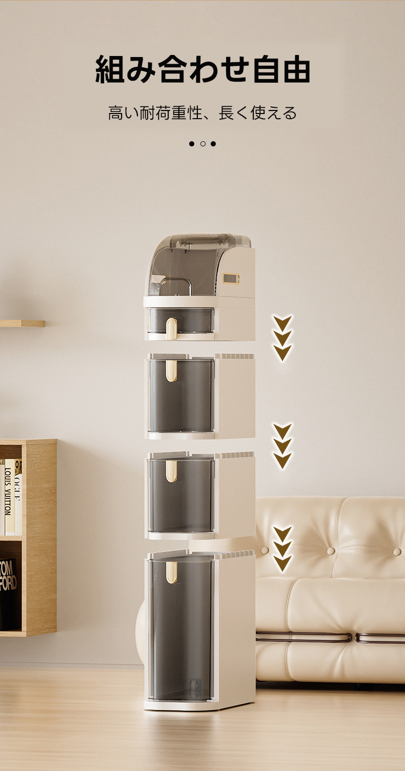 - 【ユーザーに優しい組み立てと使用感】モジュラー式のデザインにより、必要に応じて高さや収納量を自由に調整可能。組み立てが簡単で、すぐに使用開始できるため、忙しい日常にもすぐに取り入れられます。清潔感を保ちながら、日常生活をより便利にします。