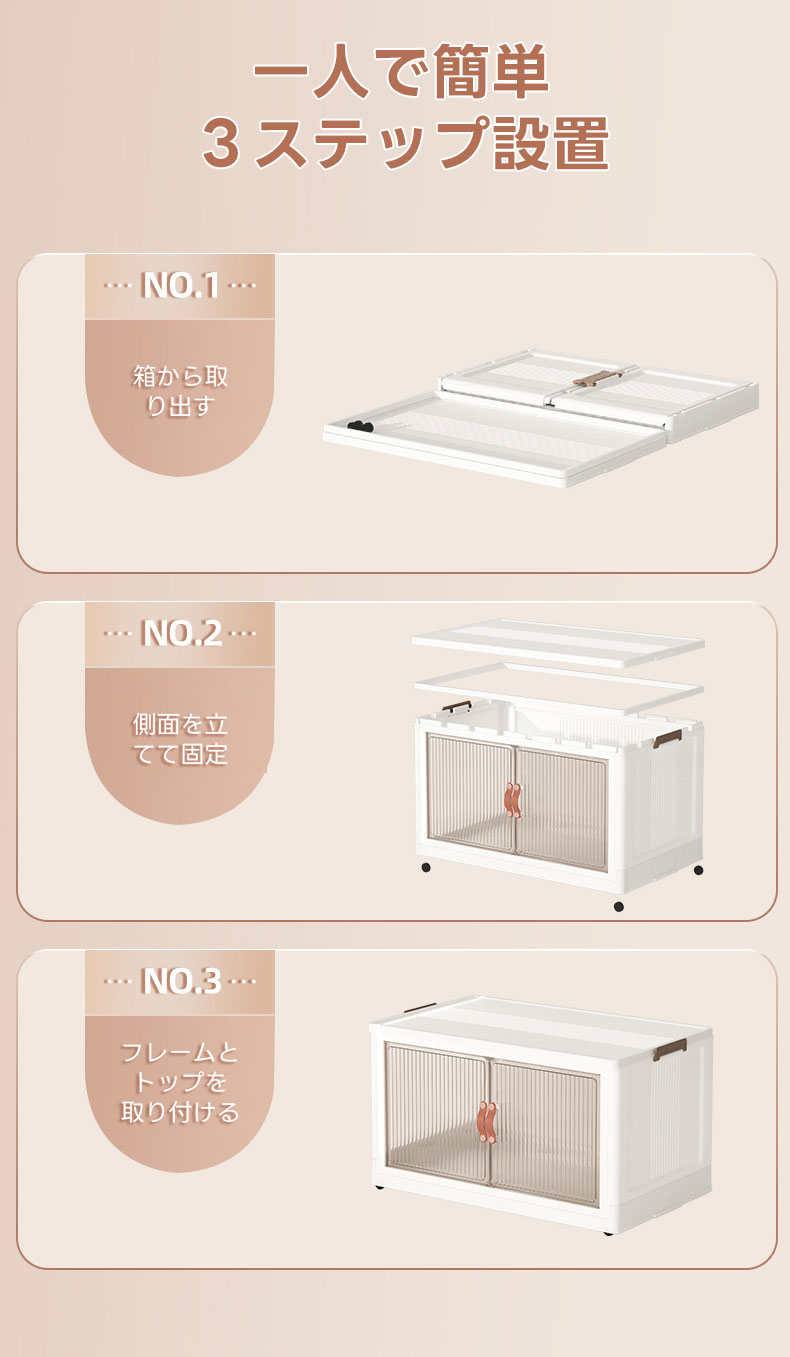 - 【簡単組み立てで手間いらず】この折りたたみ式収納ボックスは、わずか5秒で組み立てが完了します。3ステップで簡単に設置でき、誰でも手軽に使用開始できます。組み立てが苦手な方でも安心してお使いいただけます。