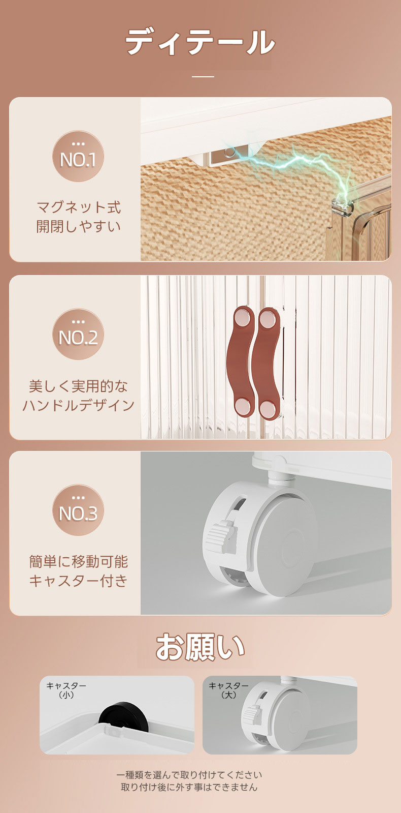 - 【快適な使用体験】キャスター付きで移動が簡単。少ない力で楽々移動でき、掃除や模様替えの際にも便利です。折りたたみ可能で、使用しない時はコンパクトに収納でき、場所を取りません。