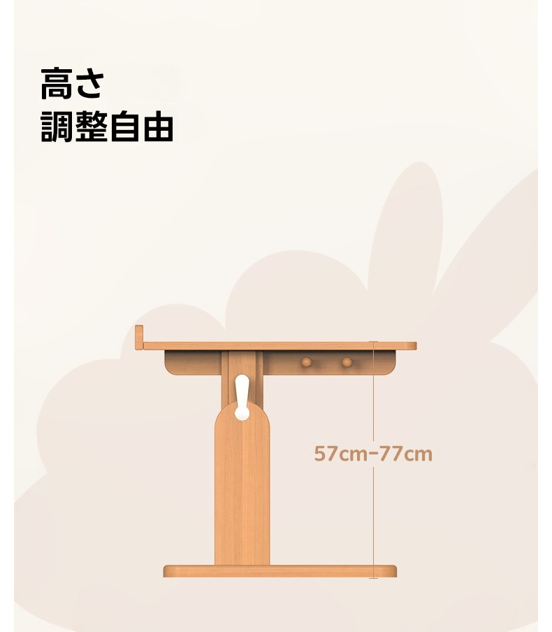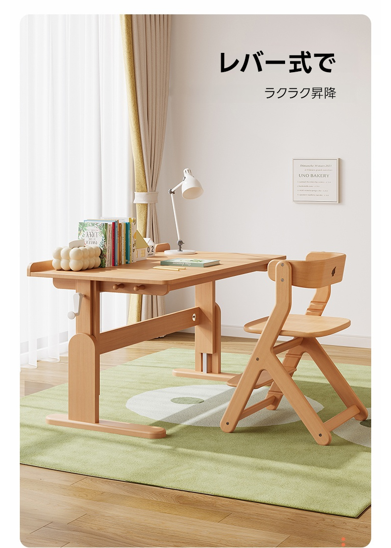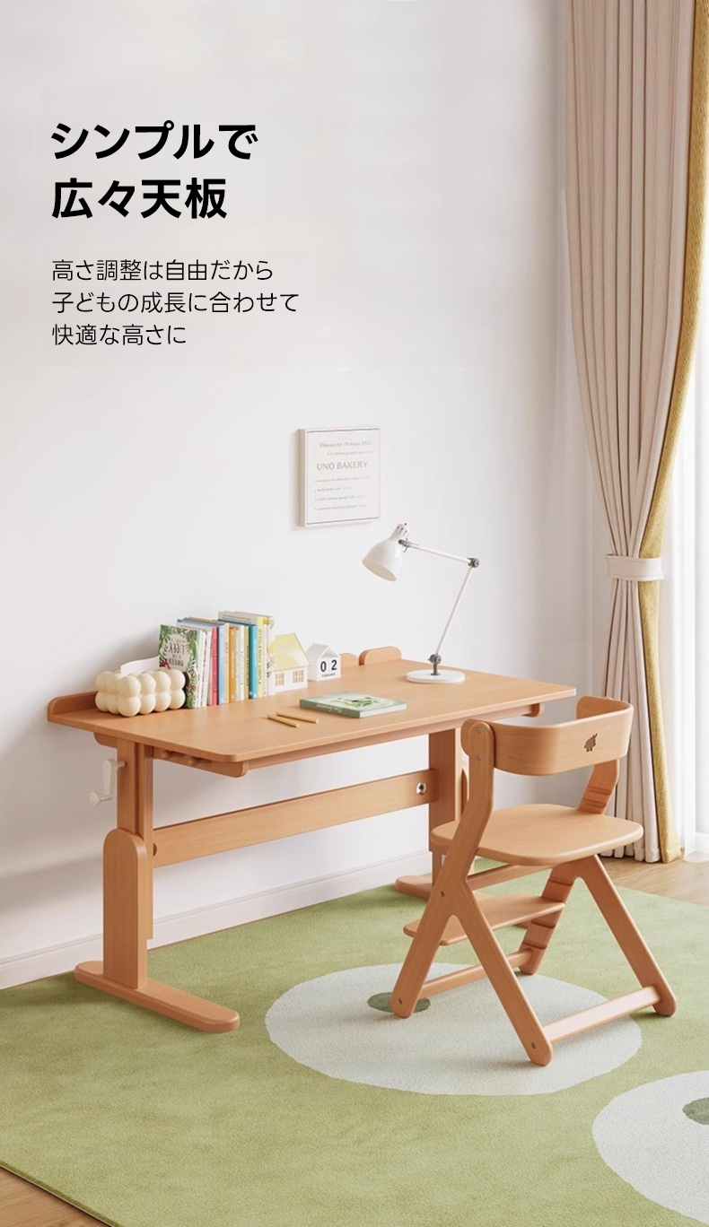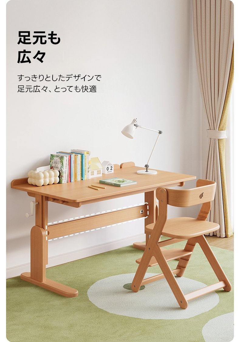 - 【高さ調整機能】無段階調整が可能なデスクは、子どもの成長に合わせて高さを自由に調整できます。レバー式で簡単に操作でき、身長95cmから160cm以上まで対応可能です。長期間にわたって使用できるため、成長期のお子様に最適です。