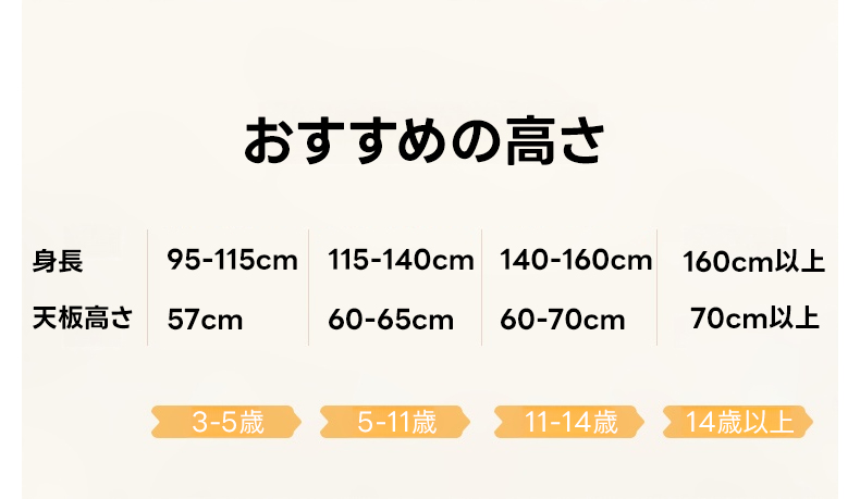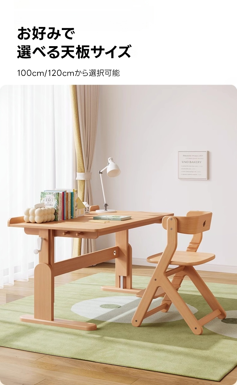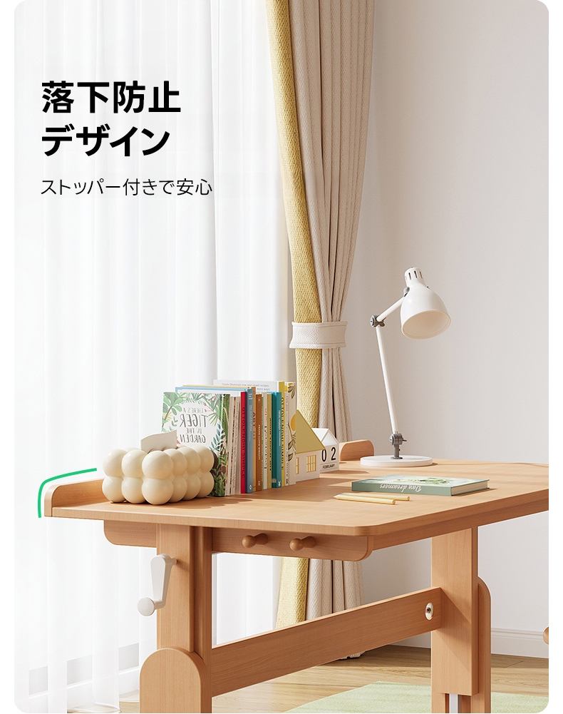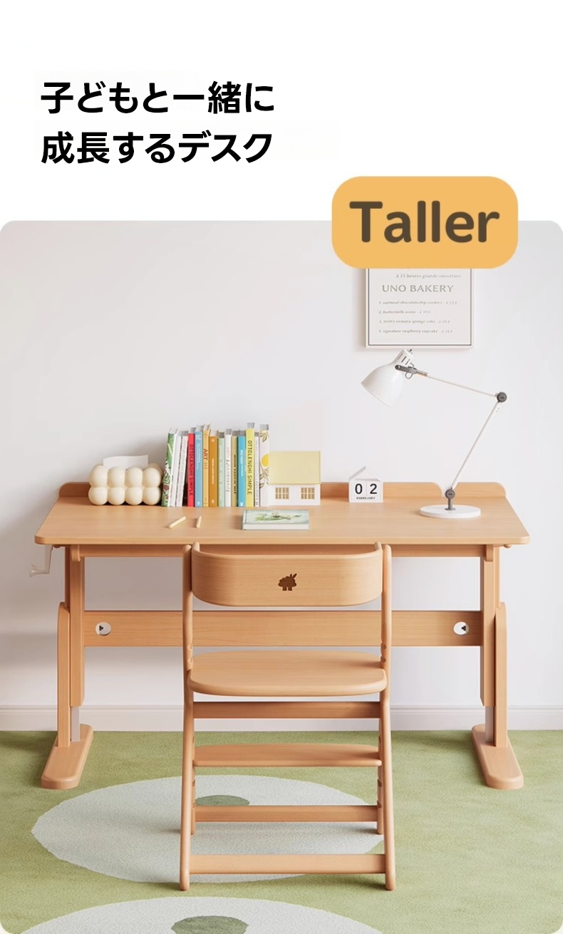 - 【高さ調整機能】無段階調整が可能なデスクは、子どもの成長に合わせて高さを自由に調整できます。レバー式で簡単に操作でき、身長95cmから160cm以上まで対応可能です。長期間にわたって使用できるため、成長期のお子様に最適です。