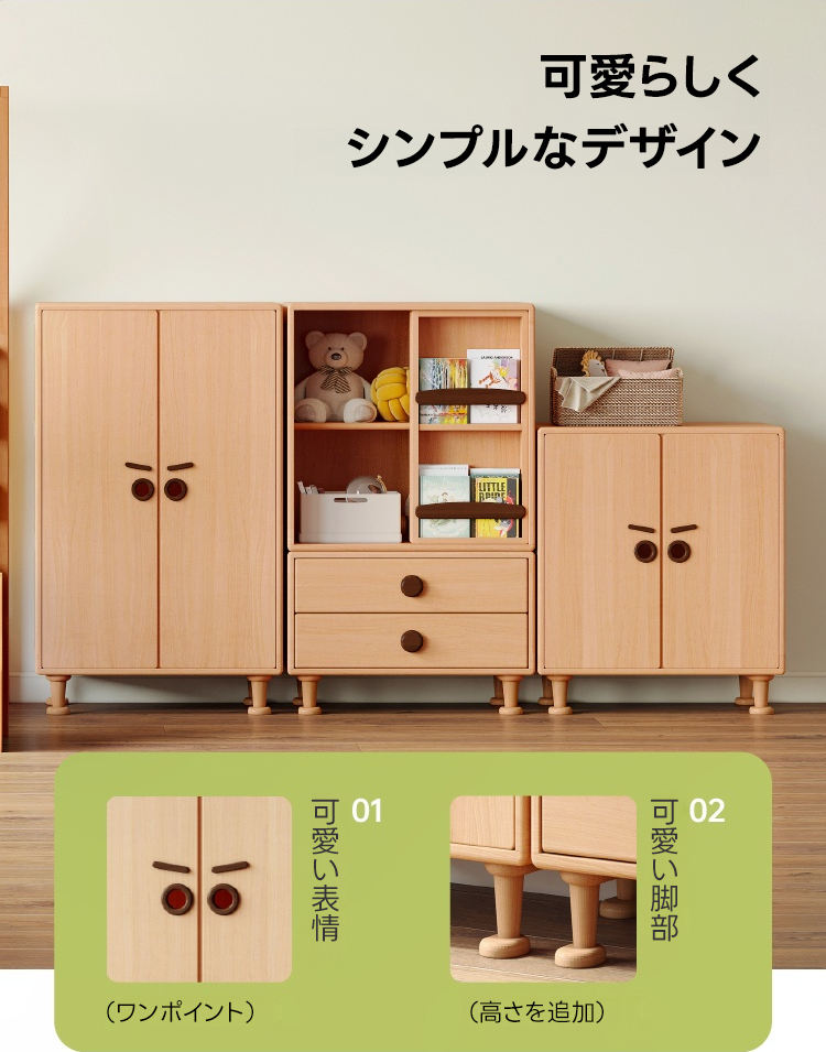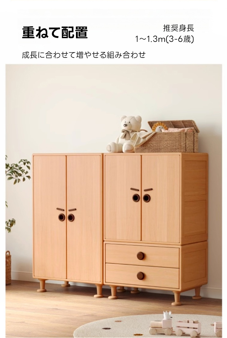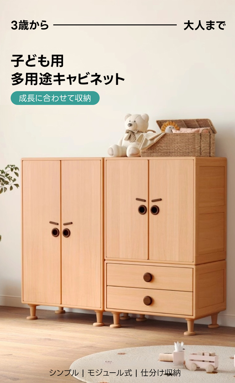 - 【多機能収納キャビネット】:この子ども用多機能木製キャビネットは、成長に合わせて自由に組み合わせが可能なモジュール式家具です。棚板は高さ調整が可能で、衣類やおもちゃ、絵本など様々なアイテムを収納できます。子供部屋や寝室に最適なデザインで、長くご使用いただけます。