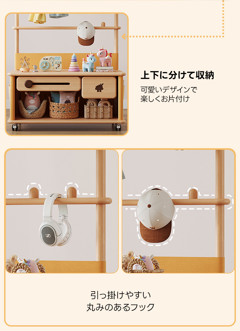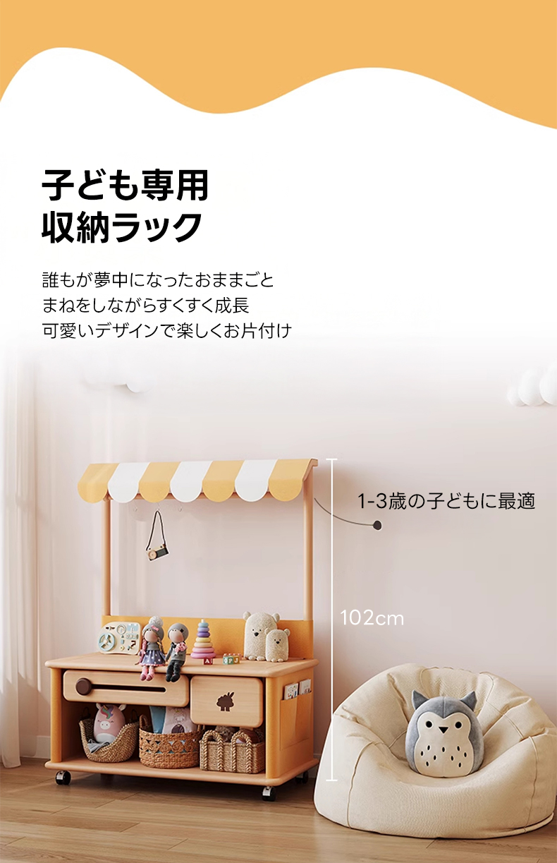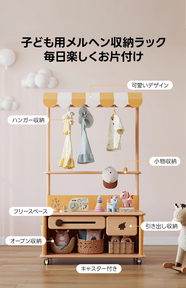 - 【子どもが楽しめる可愛いデザイン】メルヘンな雰囲気を醸し出すデザインで、子どもたちが楽しみながら片付けを学べます。キャスター付きでスムーズに移動可能、部屋の模様替えや掃除の際にも便利です。