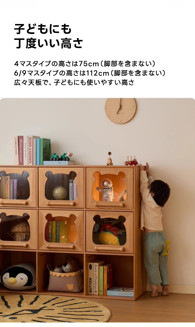 - 【高品質な素材と安全性】欧州産のブナ材を使用し、ドイツ製の安全なオイルで仕上げられています。アクリル製の扉は見える収納が可能で、子どもが触れても安心の設計です。角丸加工が施されており、安全に使用できます。