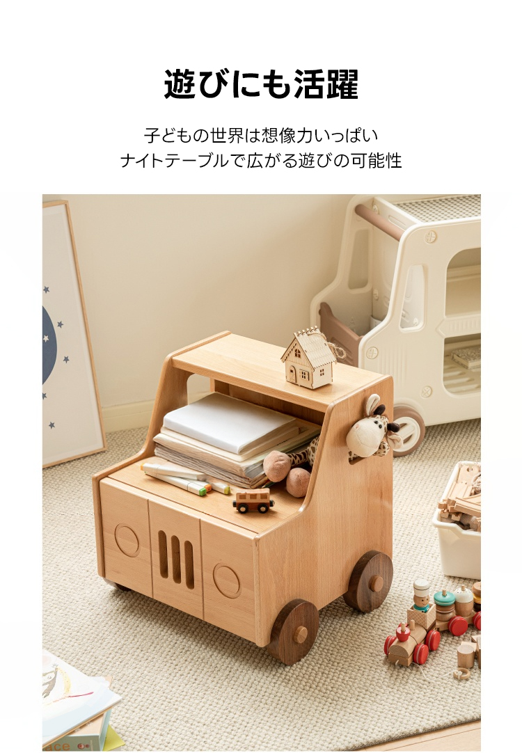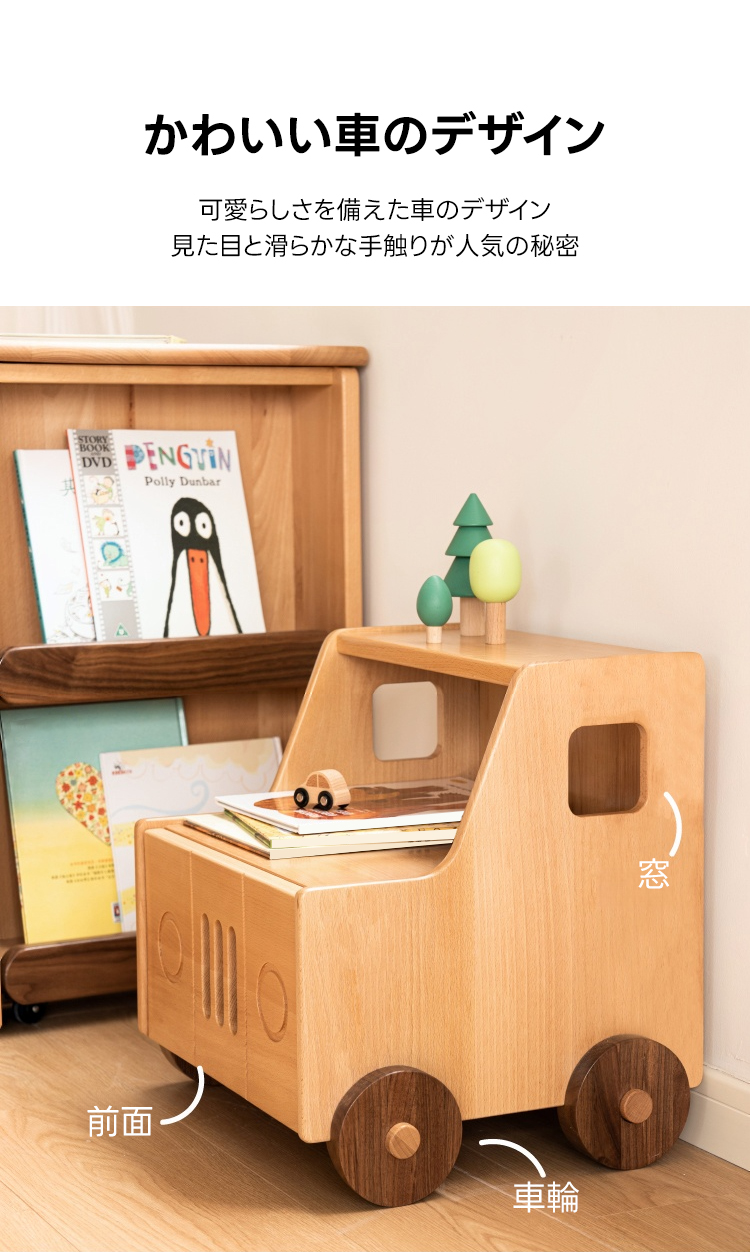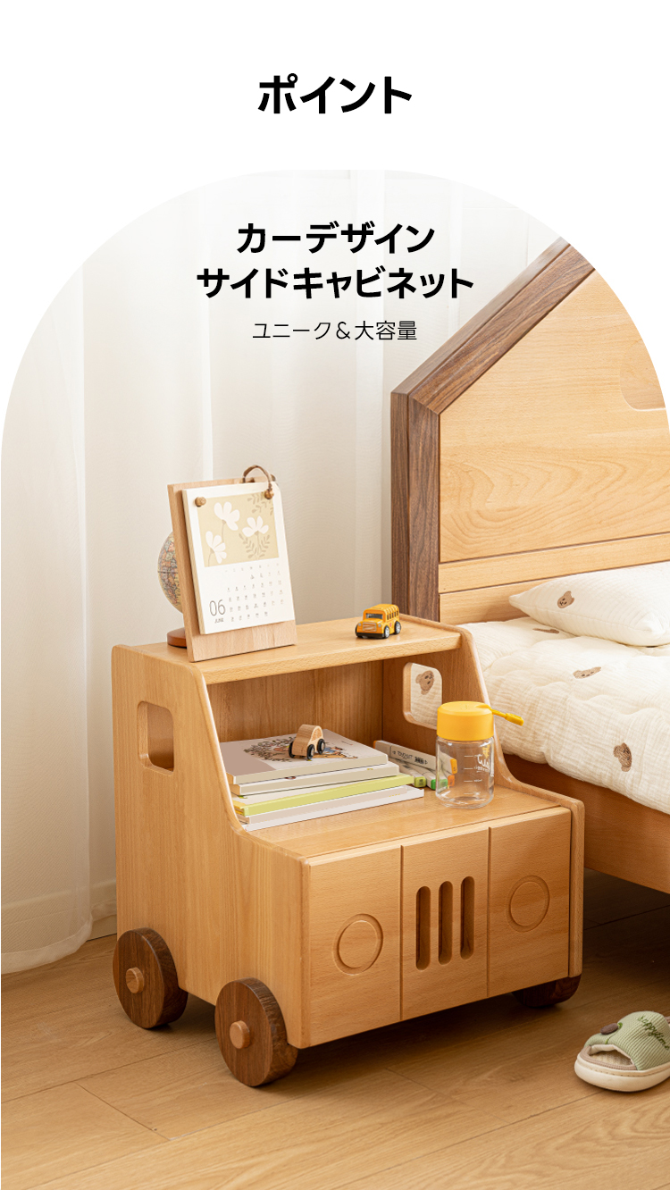 - 【ユニークな車型デザインで遊び心を刺激】このカーデザインサイドキャビネットは、子どもたちの好奇心を刺激し、遊び心を育てるユニークなデザインが特徴です。両サイドの窓型デザインがリアリティと軽やかさを演出し、子ども部屋を楽しく彩ります。