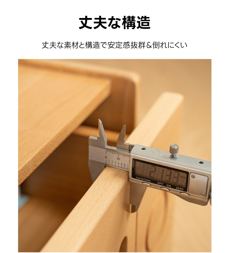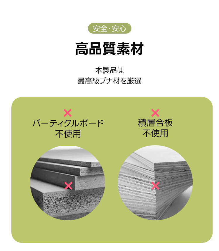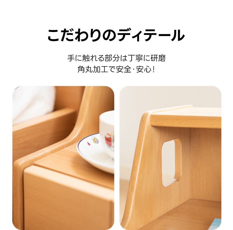 - 【高品質な素材と安全設計】100%木製で、パーティクルボードや積層合板は使用していません。ブナ材とゼブラウッド材を使用し、耐久性と自然な美しさを提供します。角丸加工が施されており、子どもが触れても安全です。