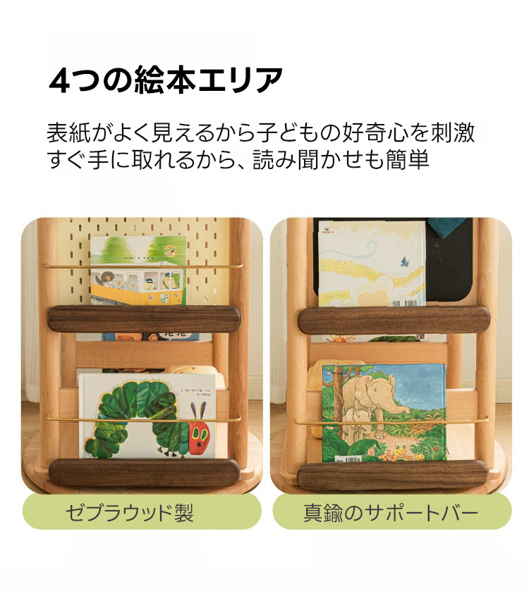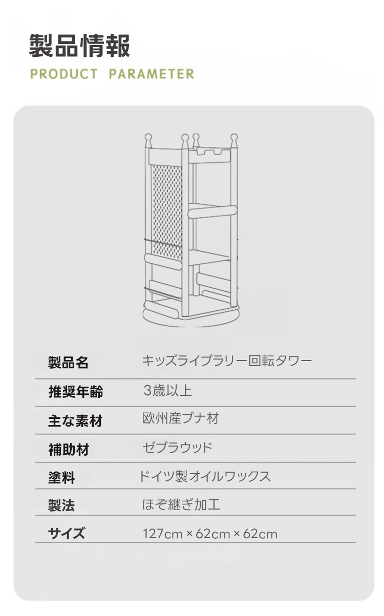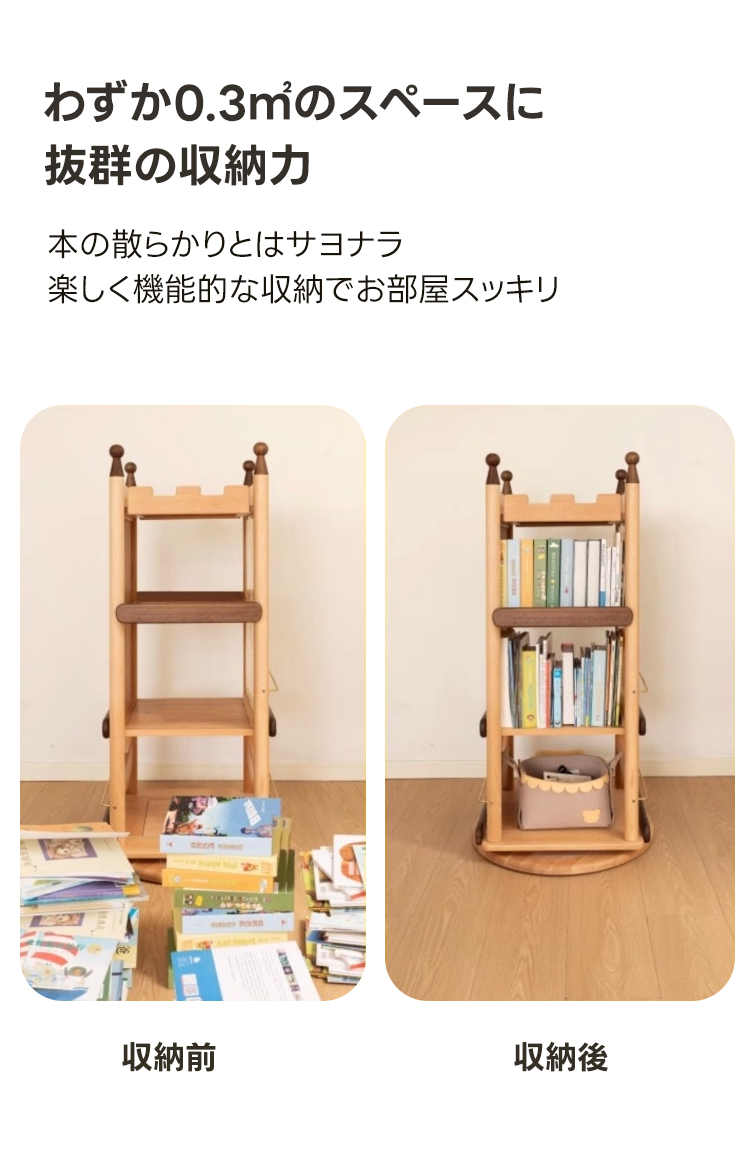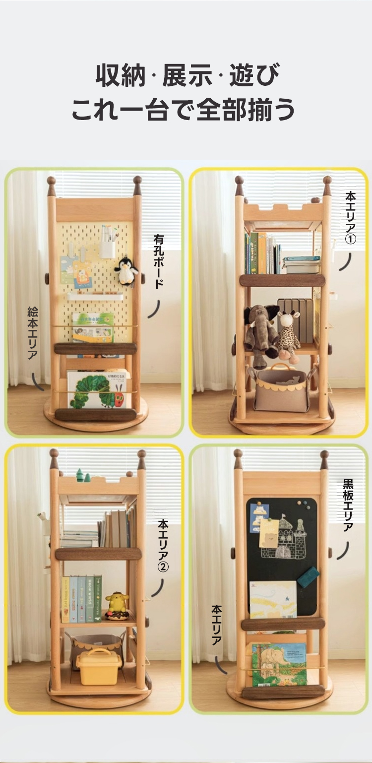 - 【回転機能で簡単アクセス】このキッズライブラリー回転タワーは、スムーズな回転機能を備えており、お子様でも簡単に本を取り出すことができます。読書の楽しさを引き出し、自然に読書習慣を育てることができます。コンパクト設計でありながら、優れた収納力を提供します。