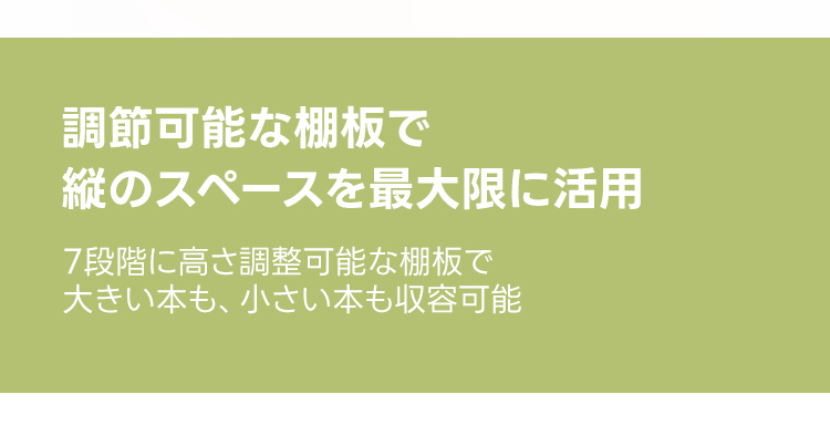 - 【調節可能な棚板で柔軟な収納】7段階に高さ調整が可能な棚板により、大きな本から小さな本まで様々なサイズの本を収納できます。お子様の成長に合わせて柔軟に対応できる設計です。組立も簡単で、すぐに使用を開始できます。