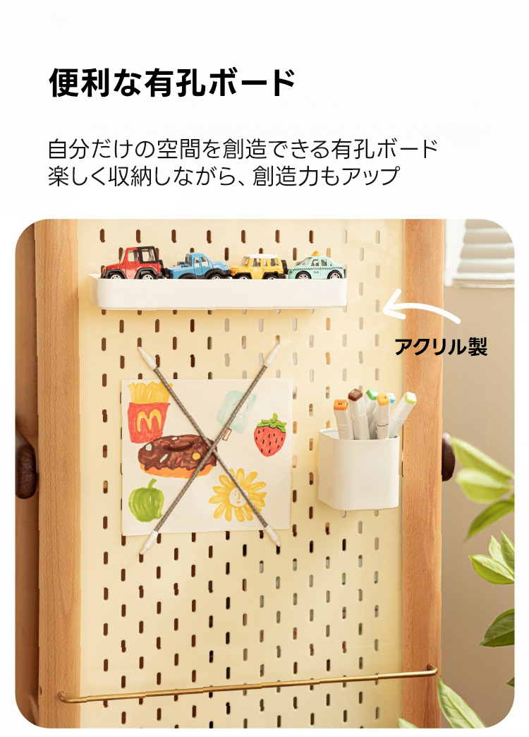 - 【多様な使用シーンに対応】子供部屋や寝室、書斎など様々な場所で活躍するこの収納タワーは、限られたスペースでも効率的に使用できます。黒板エリアや有孔ボードを活用して、創造力を育むことができます。ナチュラルなデザインはどんなインテリアにもマッチします。