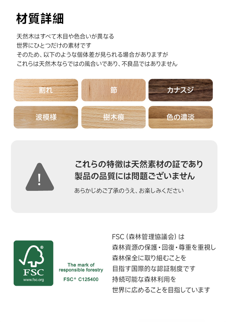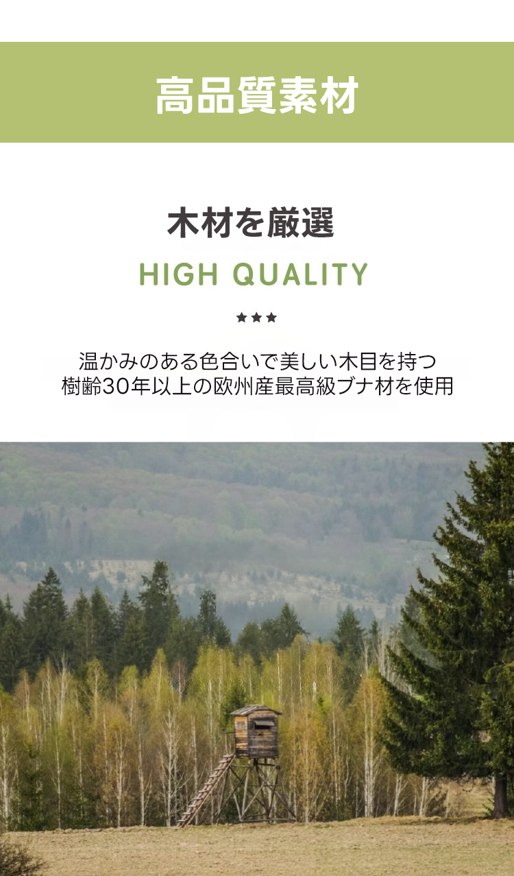 - 【高品質素材で安心】ヨーロッパ産のブナ材とゼブラウッド材を使用し、耐久性と美しい木目を実現しています。自然で環境に優しいドイツ製オイルワックスで仕上げられており、安心して長くお使いいただけます。丈夫なフレームと安定感のある土台で安全性も抜群です。