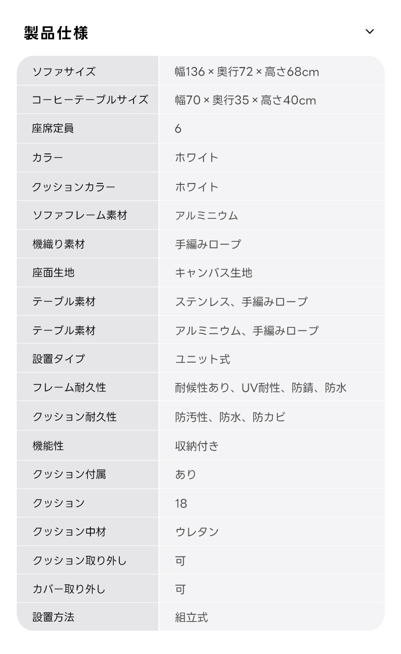- 【高品質素材とデザイン】:フレームには軽量で耐久性に優れたアルミを使用し、耐候性、UV耐性、防錆、防水性能を兼ね備えています。クッションは通気性が高く、夏でも快適に過ごせるウレタンフォームを使用。ホワイトのクッションカラーはどんなインテリアにも合わせやすいです。