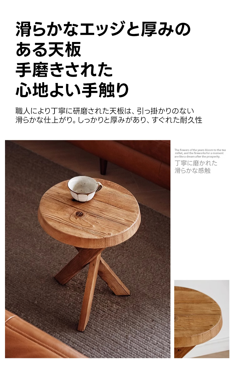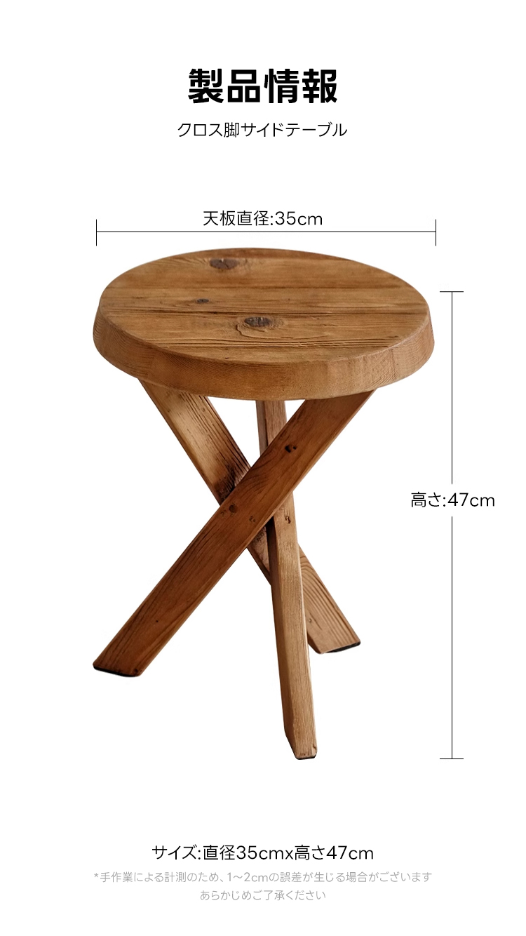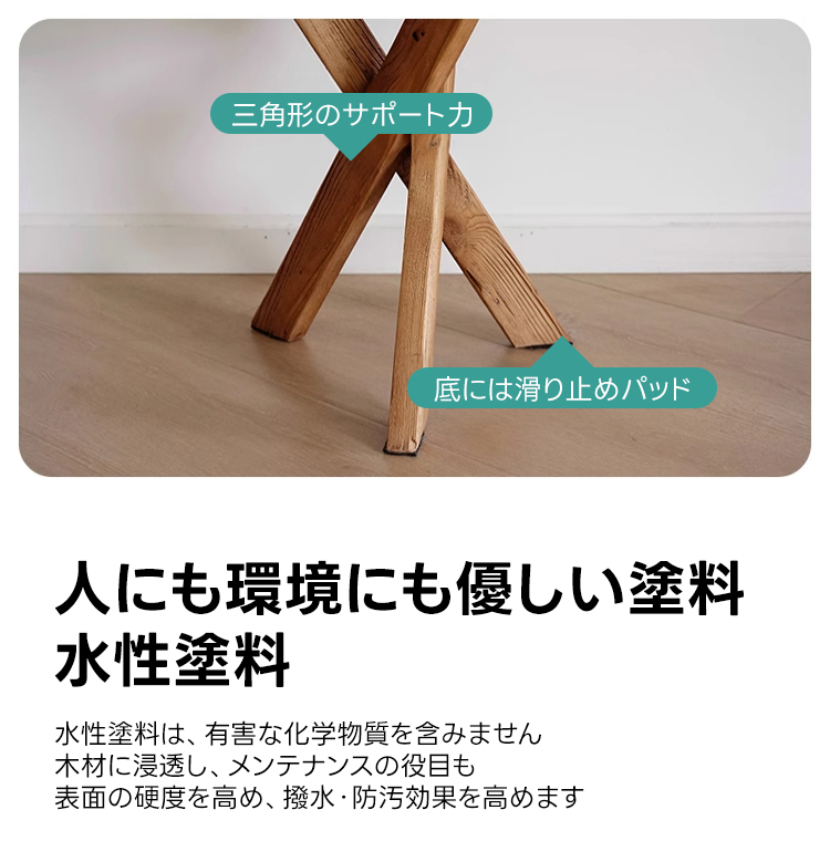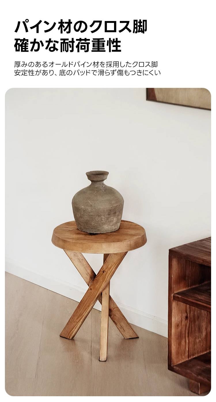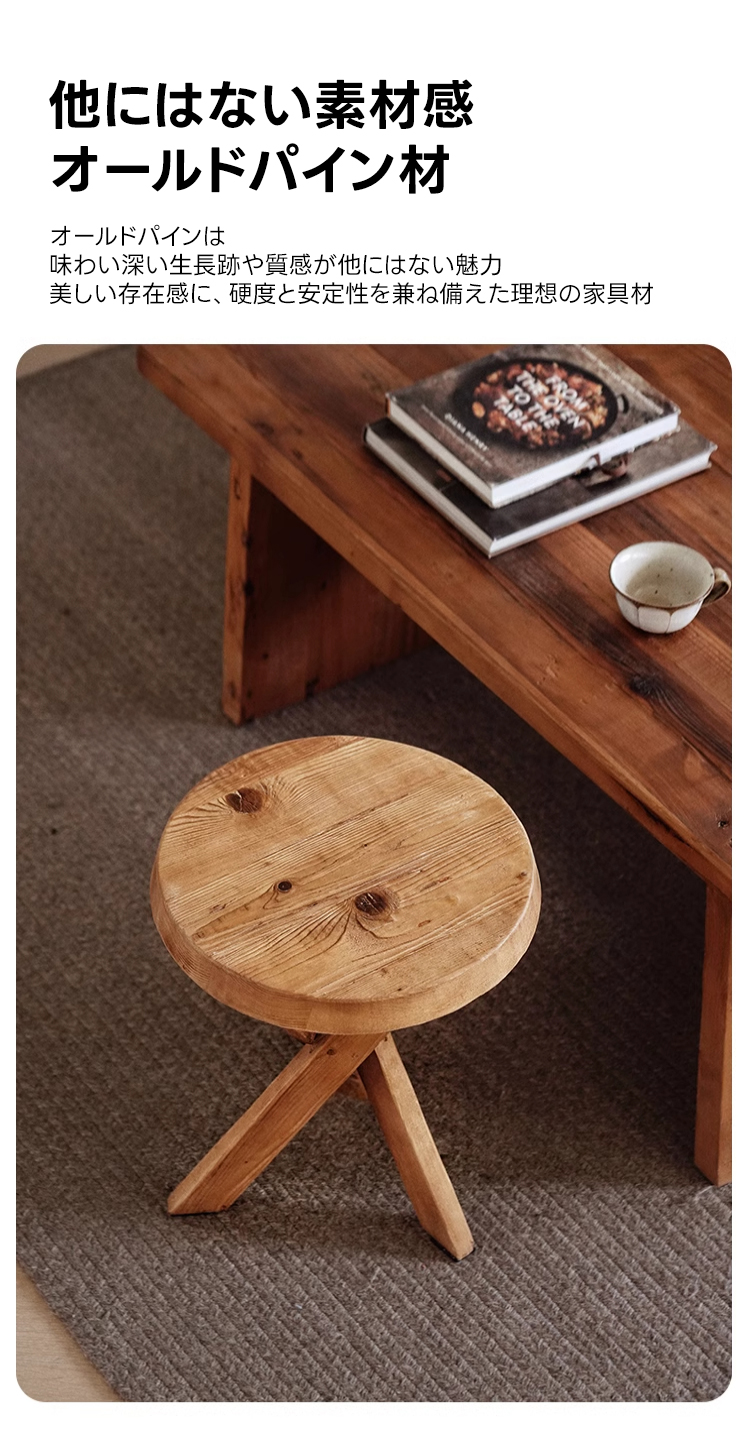 - 【高品質な素材と優れたデザイン】オールドパイン材を使用し、味わい深い木目と質感が魅力です。クロス脚のデザインが特徴で、しっかりとした耐荷重性を持ち、底には滑り止めパッドが付いており、安定性を高めています。