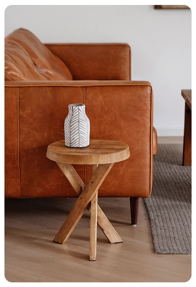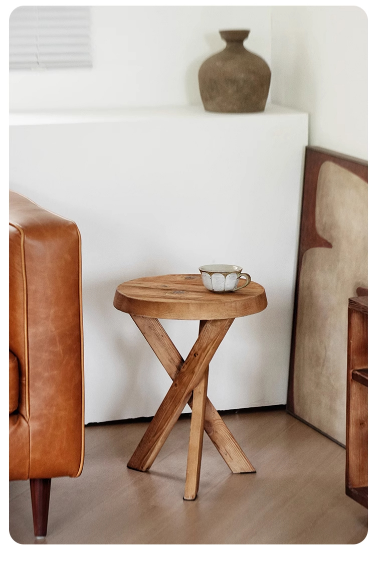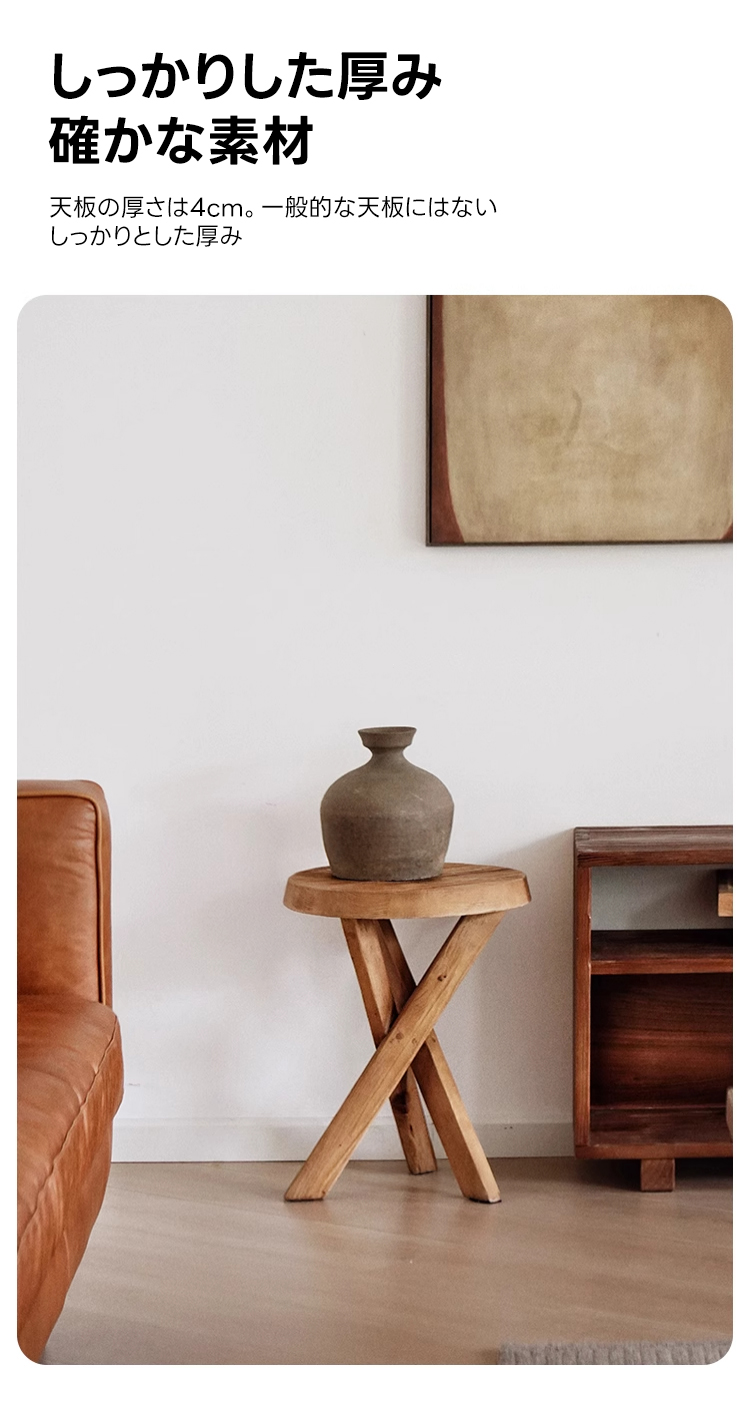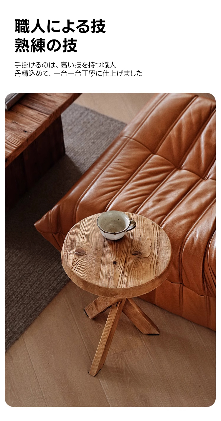 - 【高品質な素材と優れたデザイン】オールドパイン材を使用し、味わい深い木目と質感が魅力です。クロス脚のデザインが特徴で、しっかりとした耐荷重性を持ち、底には滑り止めパッドが付いており、安定性を高めています。
