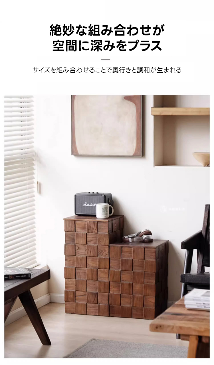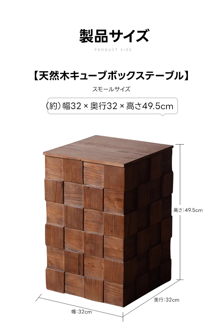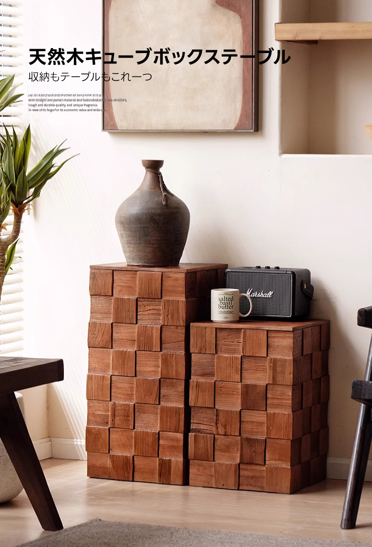 - 【多機能な天然木キューブボックステーブル】このテーブルは、北欧風デザインと高級感のある木目が特徴です。ニレ材を使用し、耐久性と安定感を兼ね備えた構造で、リビングや寝室に最適です。サイドテーブルやナイトテーブルとしても活用可能で、あらゆる生活シーンにフィットします。