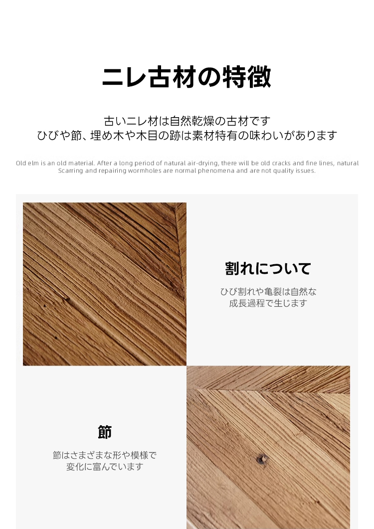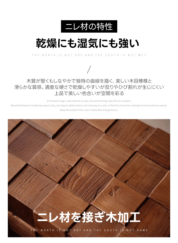 - 【高品質な素材と職人技】ニレ材を使用したこのテーブルは、乾燥や湿気に強く、耐久性に優れています。手作業で仕上げられた滑らかな質感と美しい木目が、空間に高級感を与えます。天然木の合板フレームを使用し、強度と安定感が抜群です。