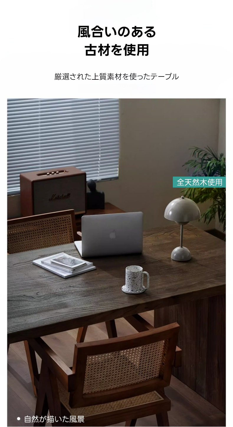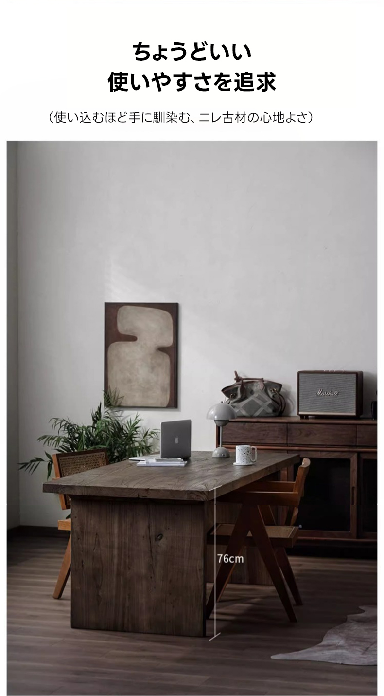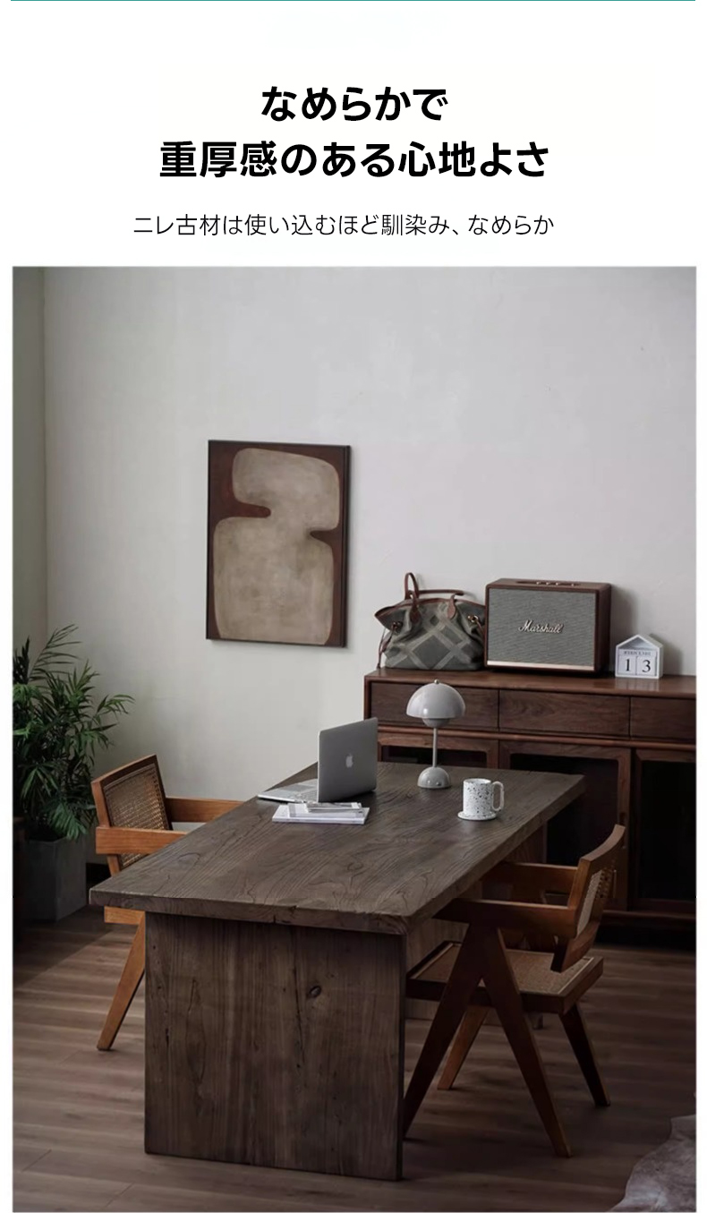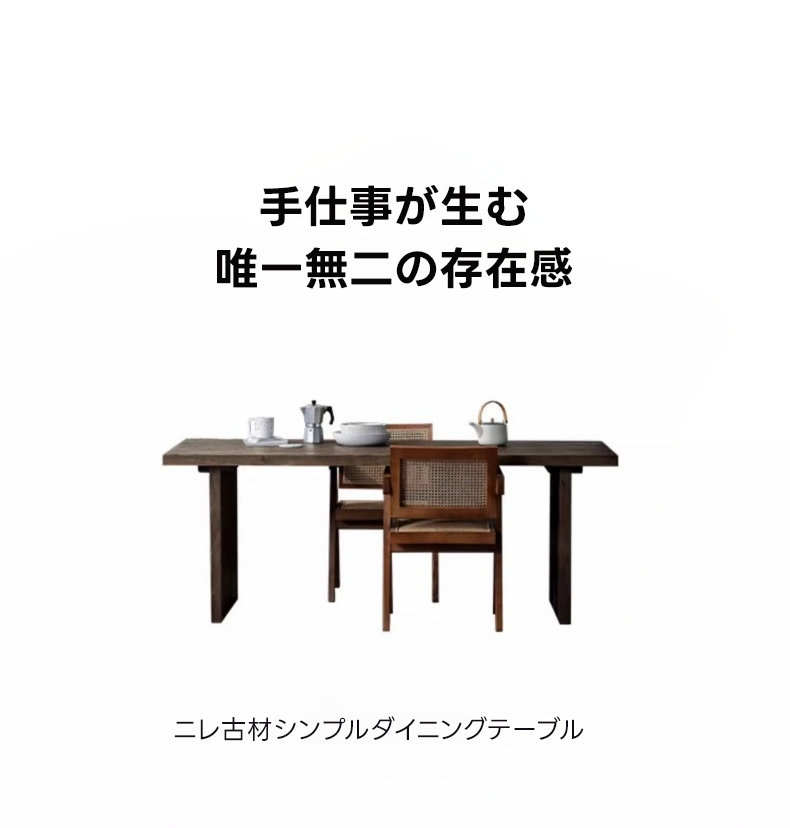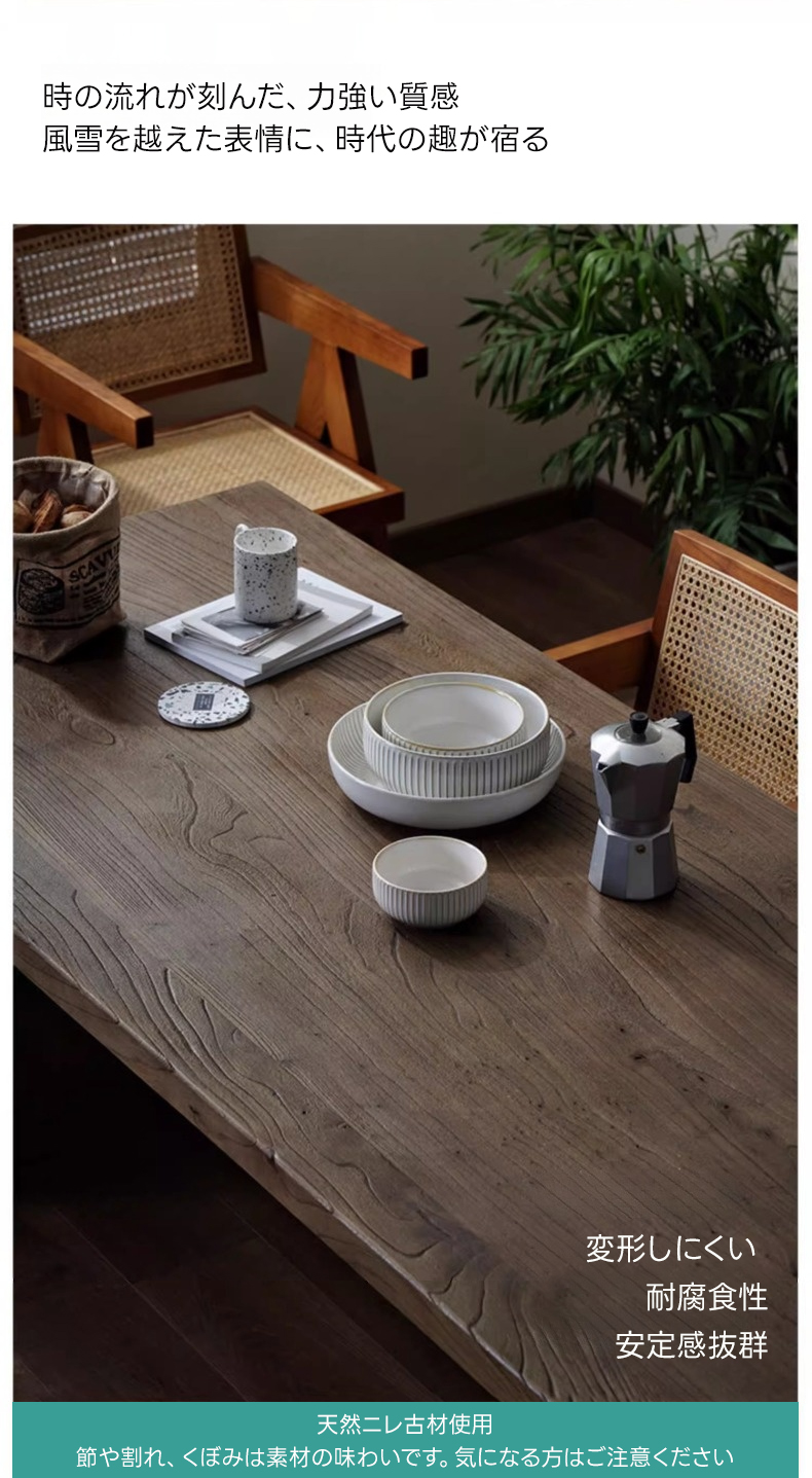 - 【美しい木目と頑丈な素材】このニレ古材ダイニングテーブルは、自然が描いた美しい木目が特徴で、長期間の使用にも耐える頑丈な構造を持っています。風合い豊かな古材を使用し、どんなインテリアにも調和します。