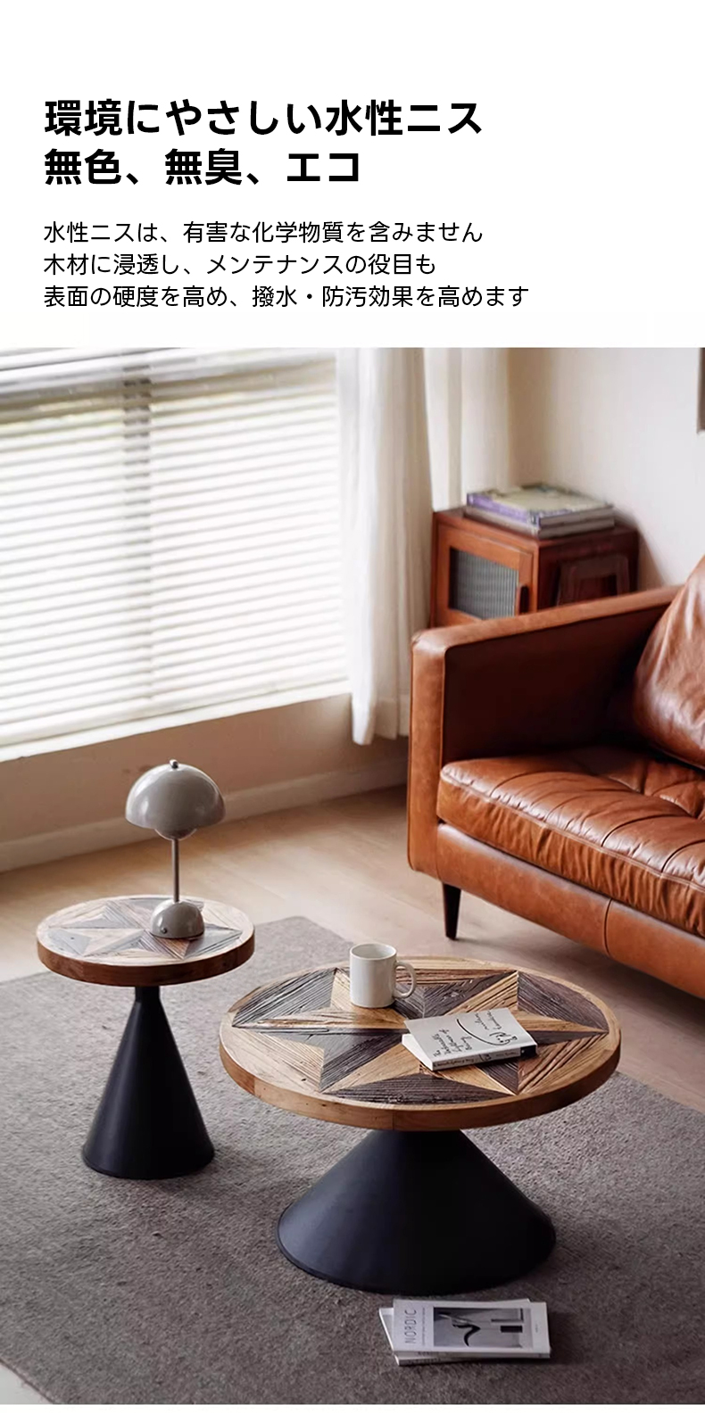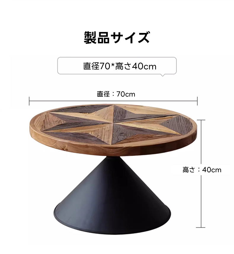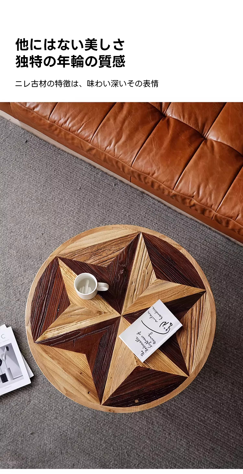 - 【ユニークなヴィンテージデザイン】このラウンドテーブルは、星形模様の天板と古材を使用したユニークなデザインが特徴です。視覚的なインパクトを与え、リビングやカフェスペースに個性を加えます。
