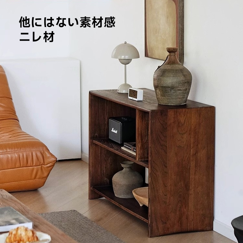 - 【高品質な素材と仕上げ】ニレ材を使用したこのラックは、深みのある質感と美しい存在感を持ち、硬度と安定性を兼ね備えた理想的な家具素材です。環境に優しい水性ニスで仕上げられており、撥水・防汚効果も高めています。