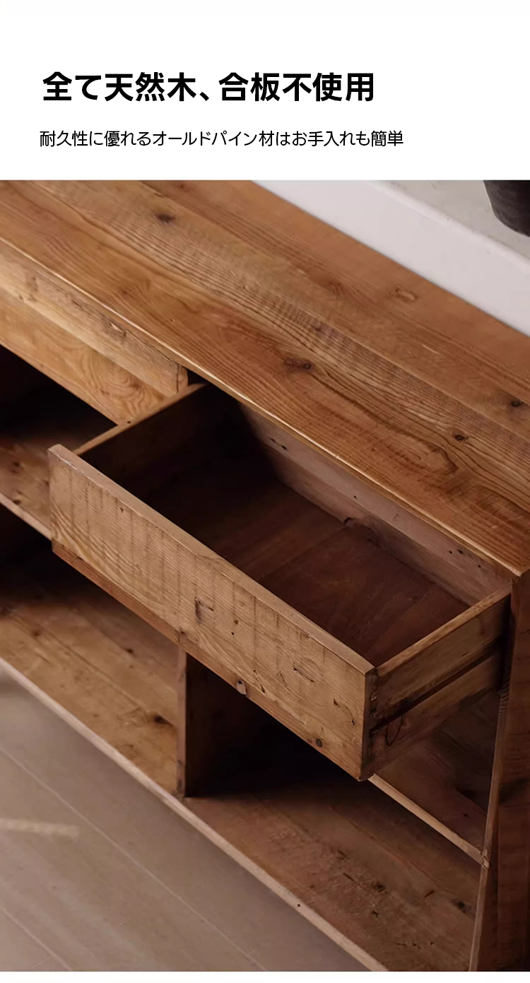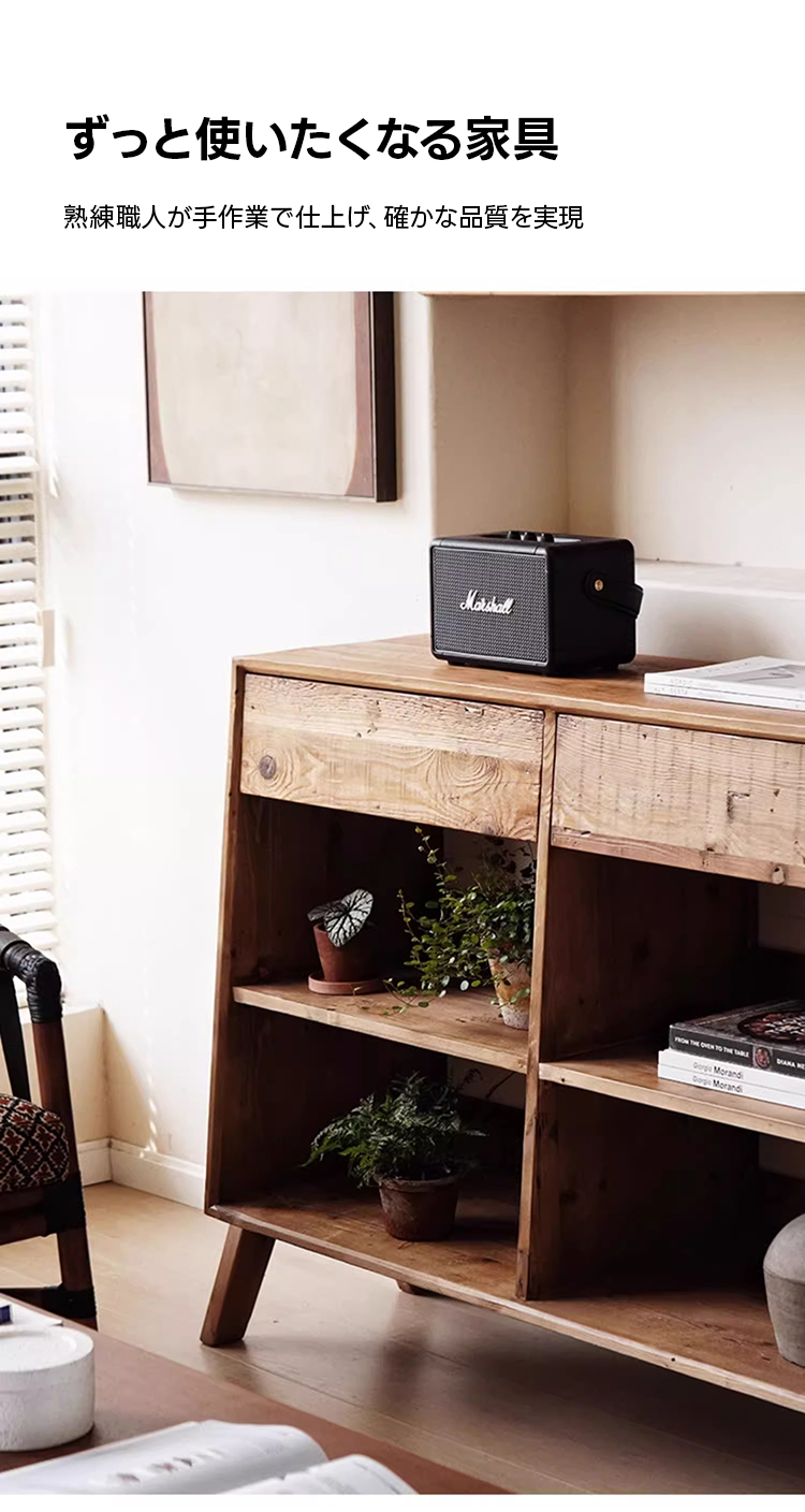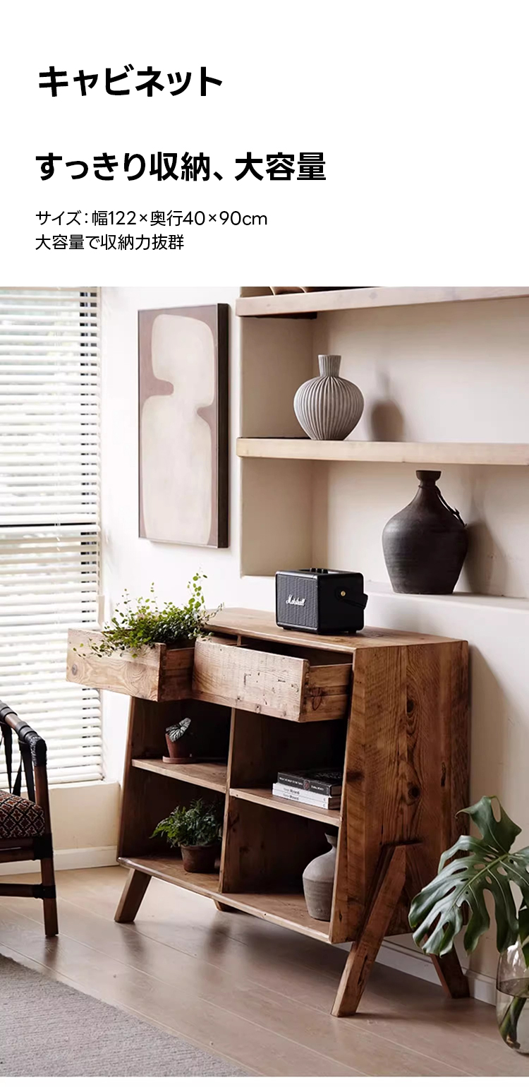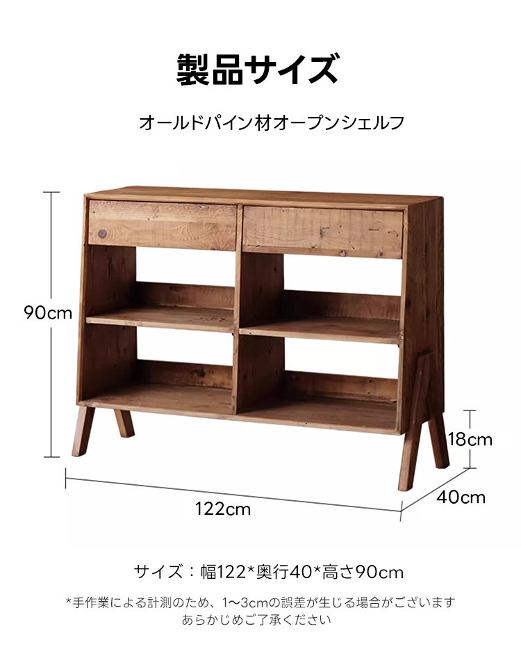- 【優れた収納力と機能性】:このオールドパイン材オープンシェルフは、幅122cm、奥行40cm、高さ90cmの大容量で、リビングやダイニングに最適な収納スペースを提供します。多機能収納で、仕切りを使ってスペースを有効活用でき、整理整頓が簡単です。