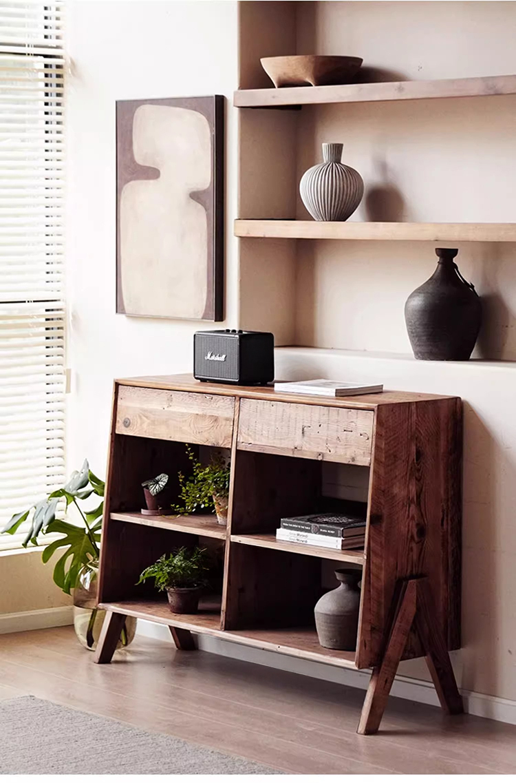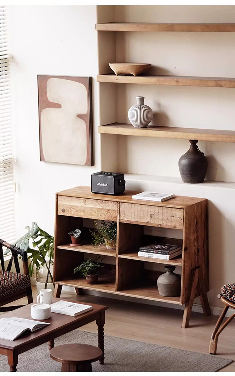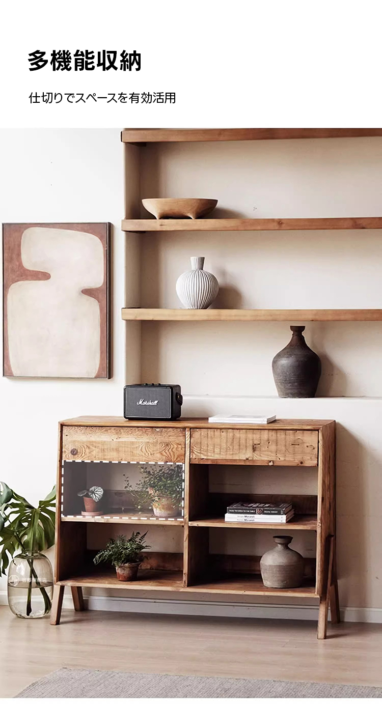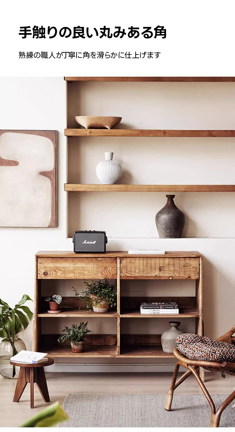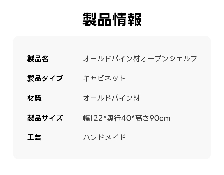 - 【優れた収納力と機能性】:このオールドパイン材オープンシェルフは、幅122cm、奥行40cm、高さ90cmの大容量で、リビングやダイニングに最適な収納スペースを提供します。多機能収納で、仕切りを使ってスペースを有効活用でき、整理整頓が簡単です。