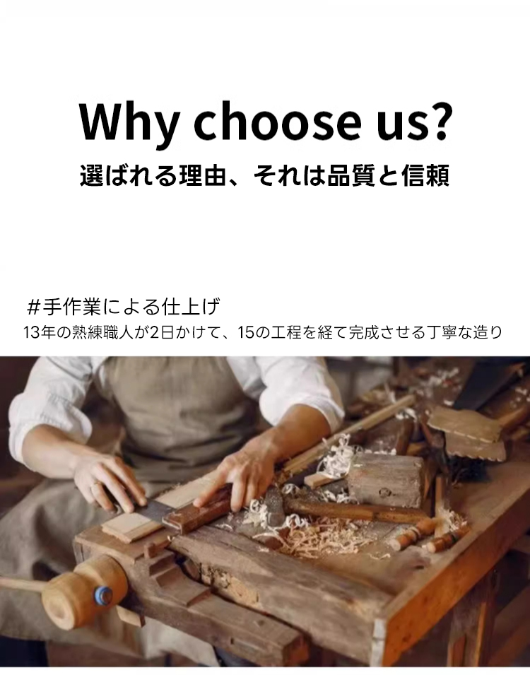 - 【快適な使用体験】:手触りの良い丸みのある角が施され、職人の手作業による丁寧な仕上げが光ります。13年の熟練職人が2日かけて、15の工程を経て完成させた丁寧な造りで、長く安心してお使いいただけます。