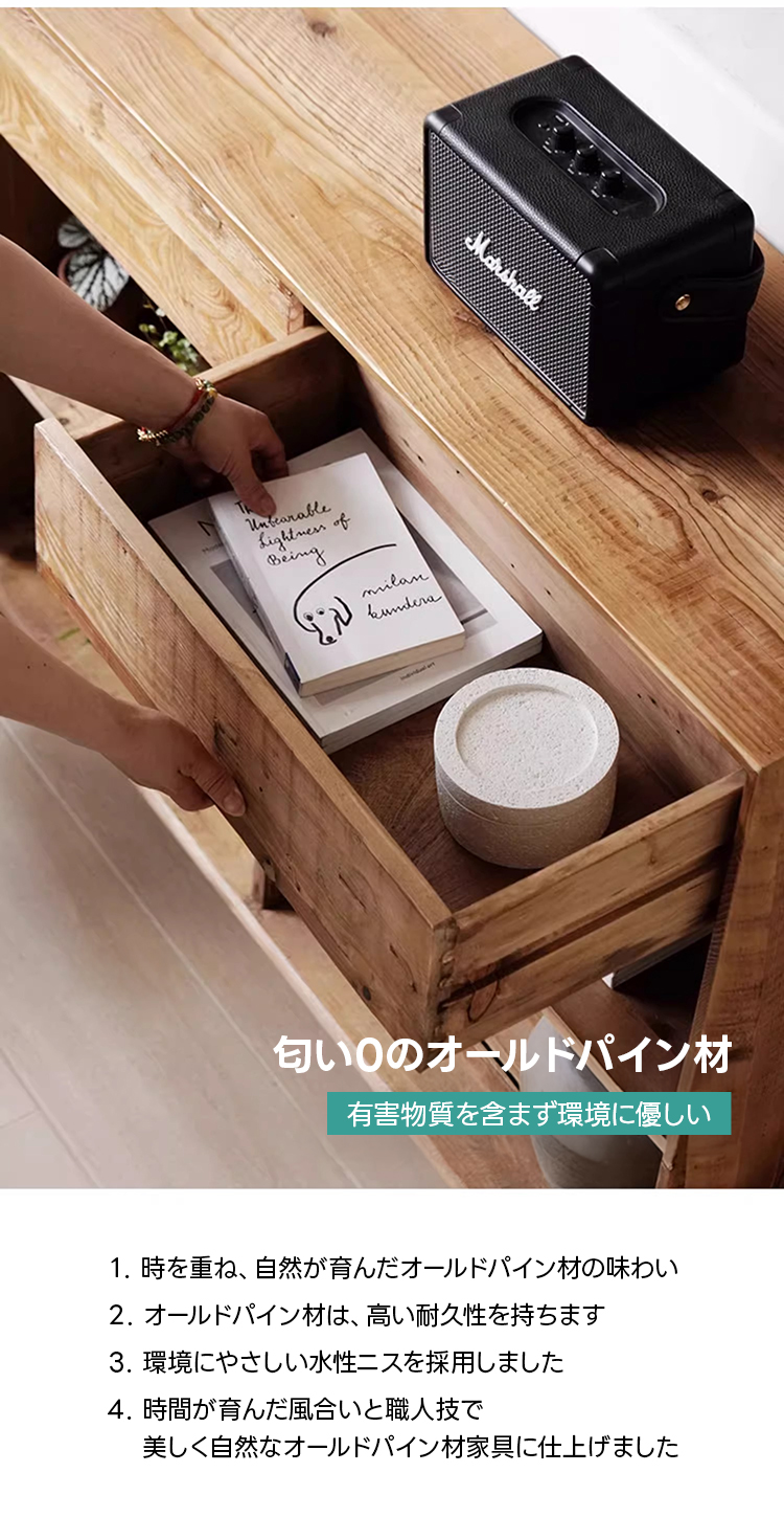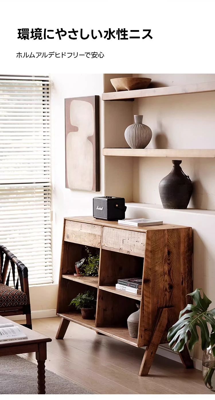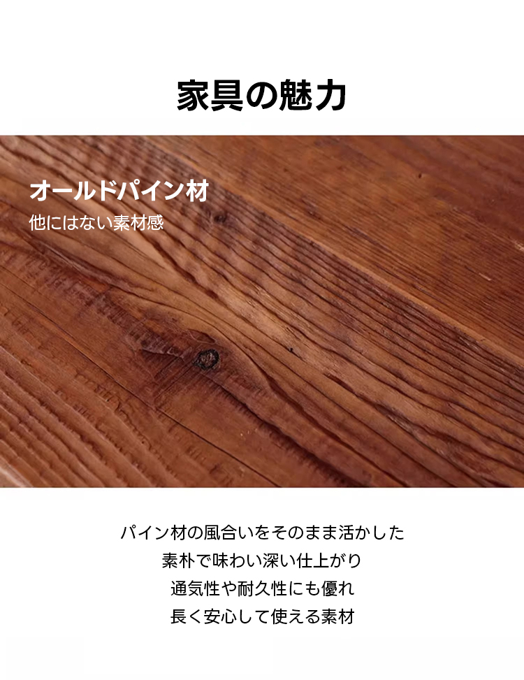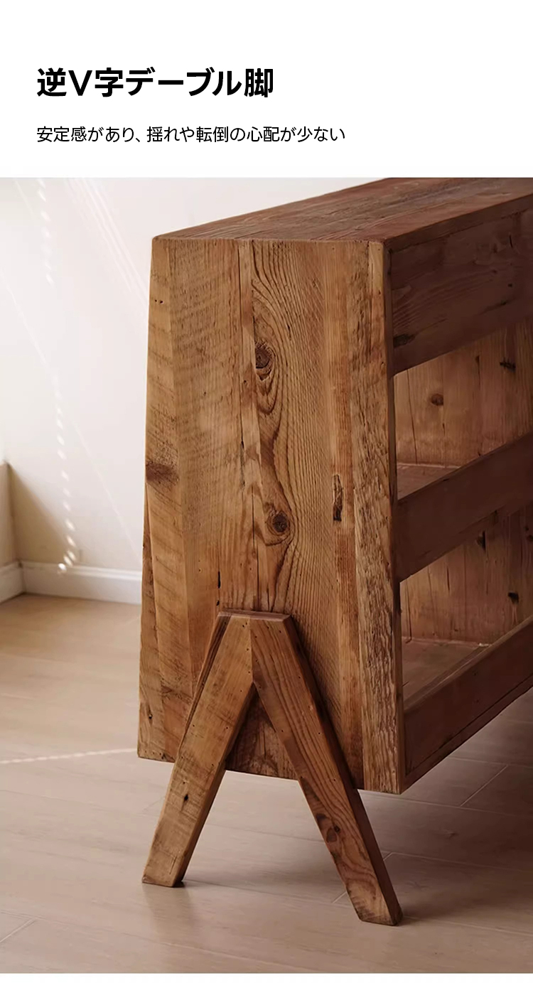- 【高品質な素材とデザイン】:オールドパイン材を使用し、自然の風合いと深みのある木目が特徴です。環境に優しい水性ニスを使用し、ホルムアルデヒドフリーで安心です。逆V字のデーブル脚が安定感を提供し、揺れや転倒の心配が少ないです。