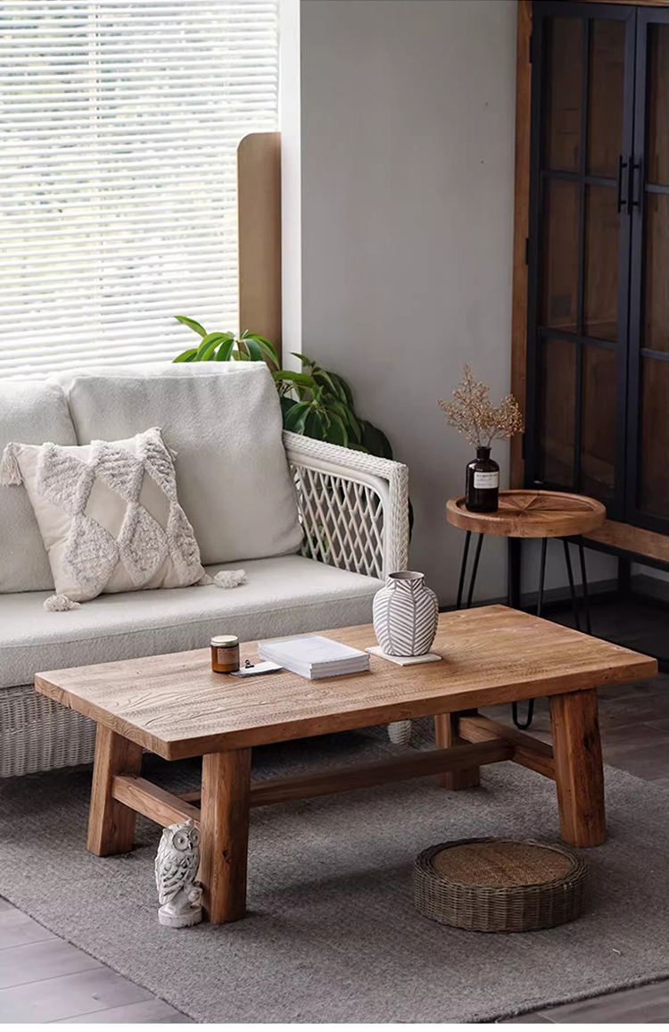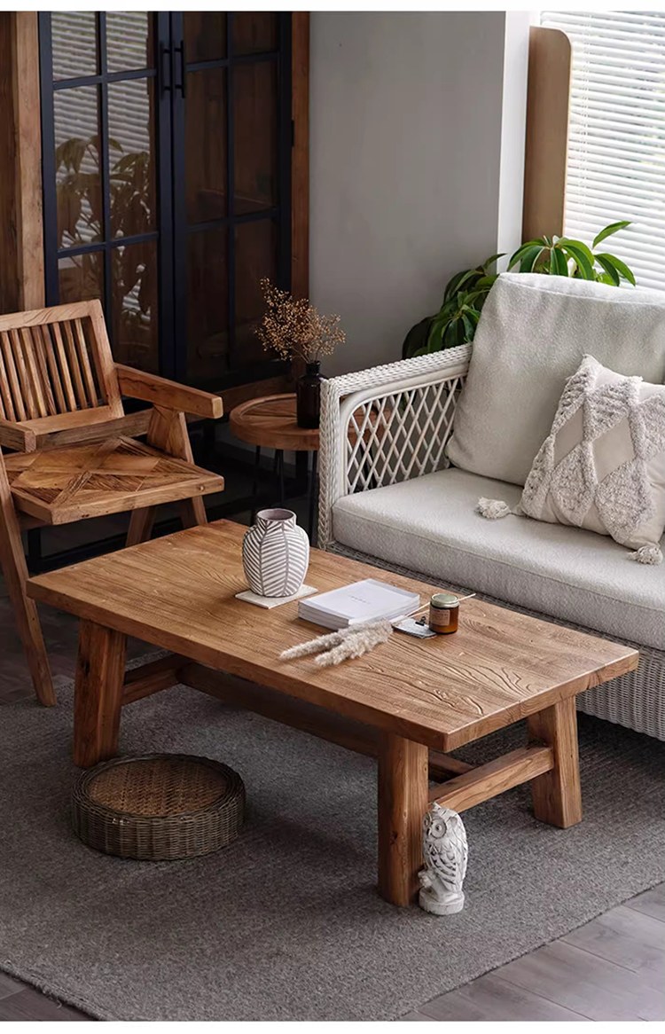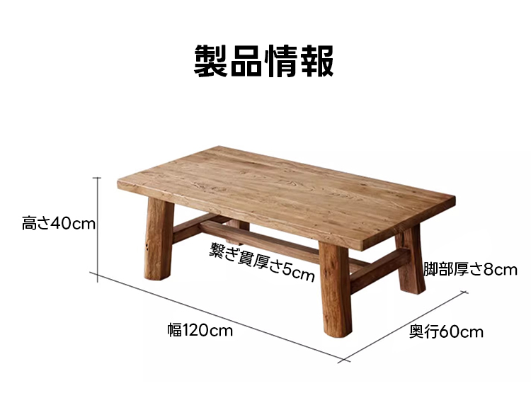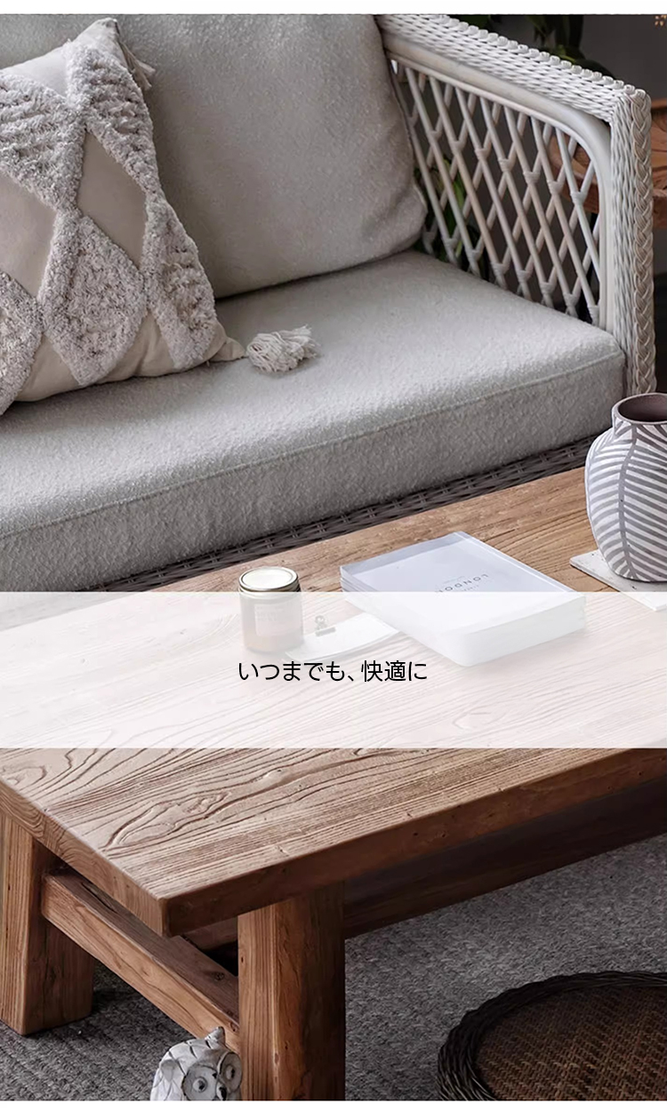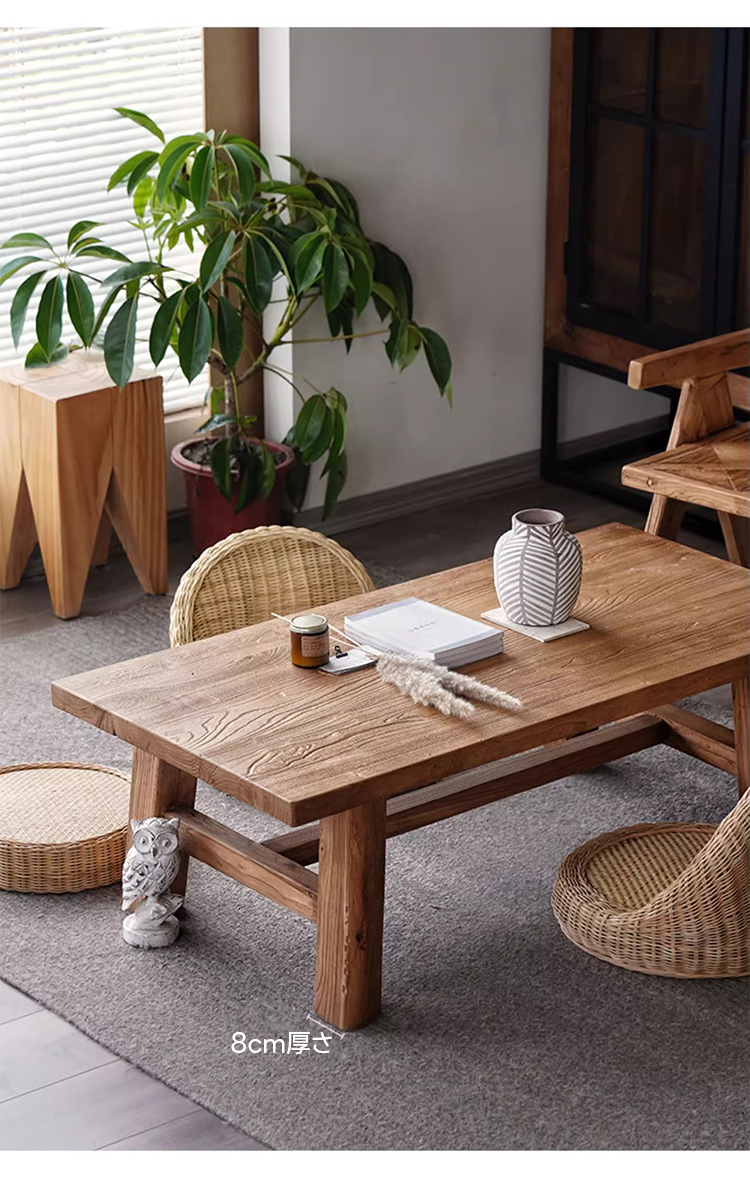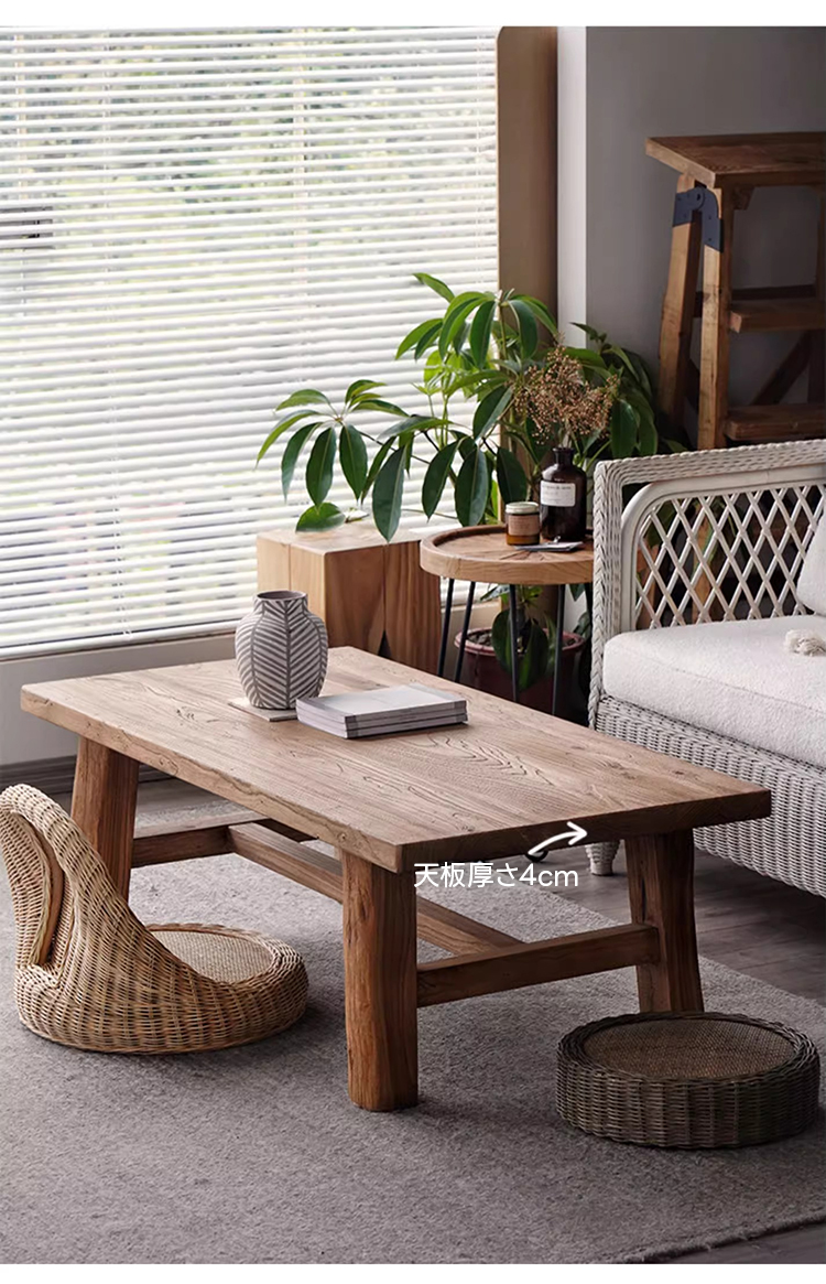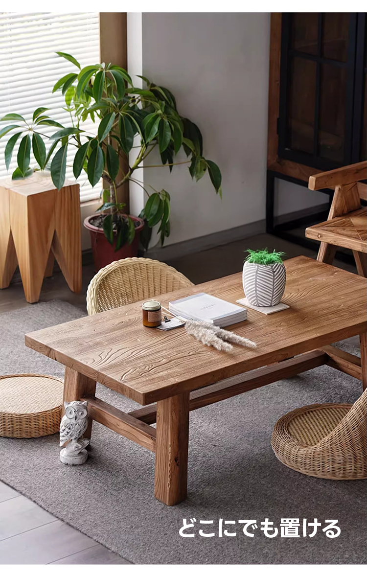 - 【ヴィンテージスタイルの魅力】:ニレ古材を使用したヴィンテージローテーブルは、リビングに自然な温かみをもたらします。ナチュラルでブラウンの色合いが特徴的で、どんなインテリアにも調和します。
