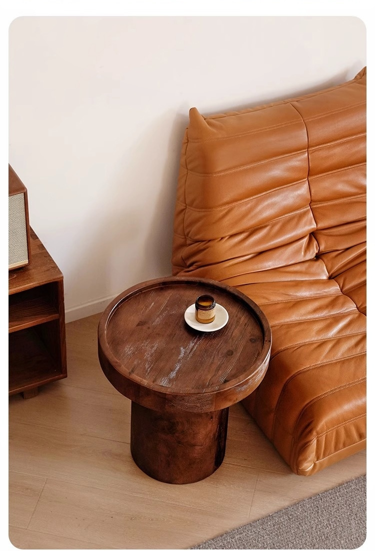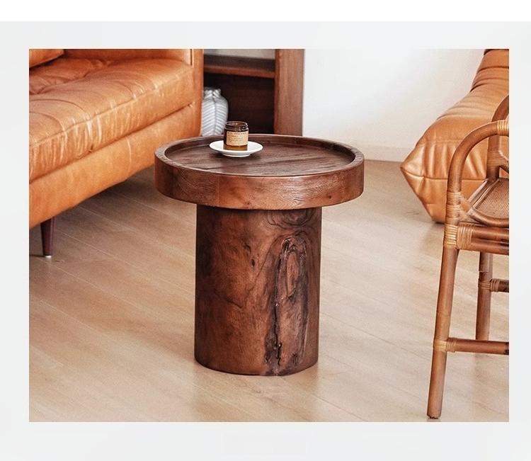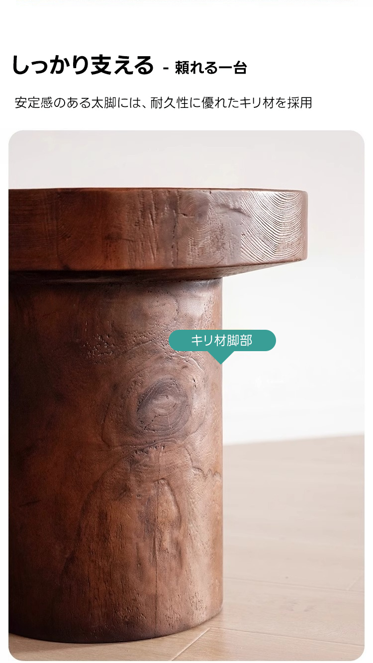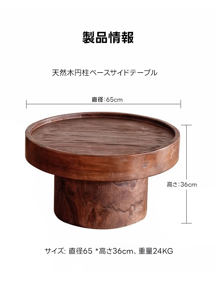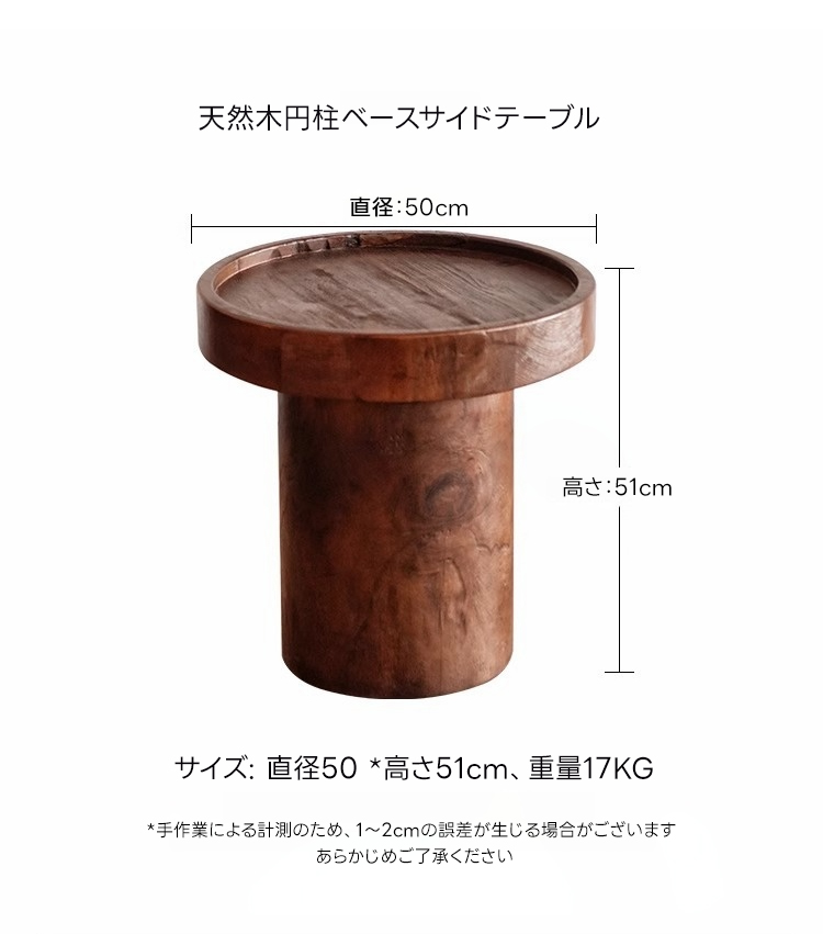 天然木円柱ベースサイドテーブル