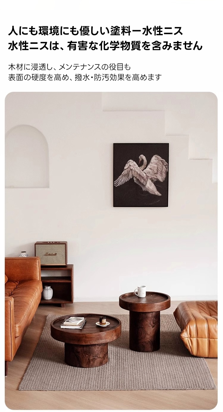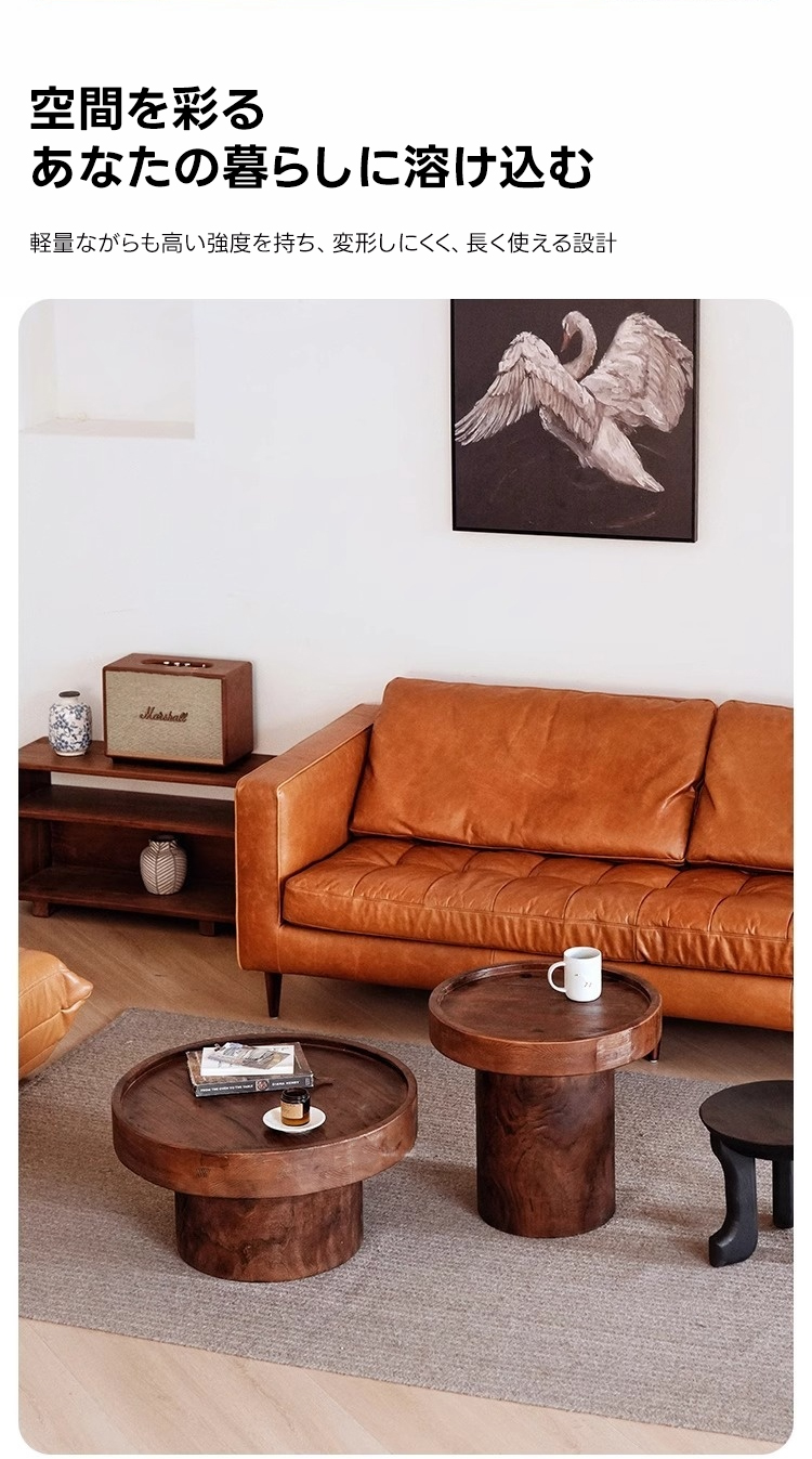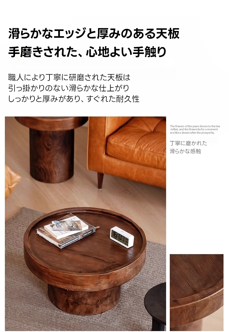 - 【快適な使用体験】滑らかなエッジと厚みのある円形の天板は、職人による手磨きで仕上げられた心地よい手触りが魅力です。異なる高さのテーブルを組み合わせることで、洗練された空間を演出できます。