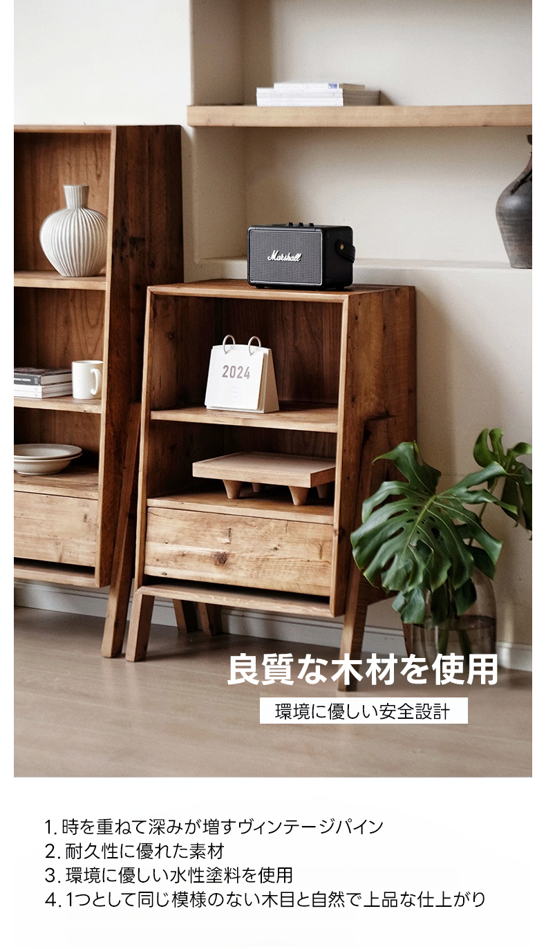 - 【高品質なパイン材と環境に優しい塗料】耐久性と弾力性に優れたビンテージパイン材を使用し、ホルムアルデヒドを含まない水性塗料で仕上げられています。環境に配慮した選択をお求めの方に最適です。
