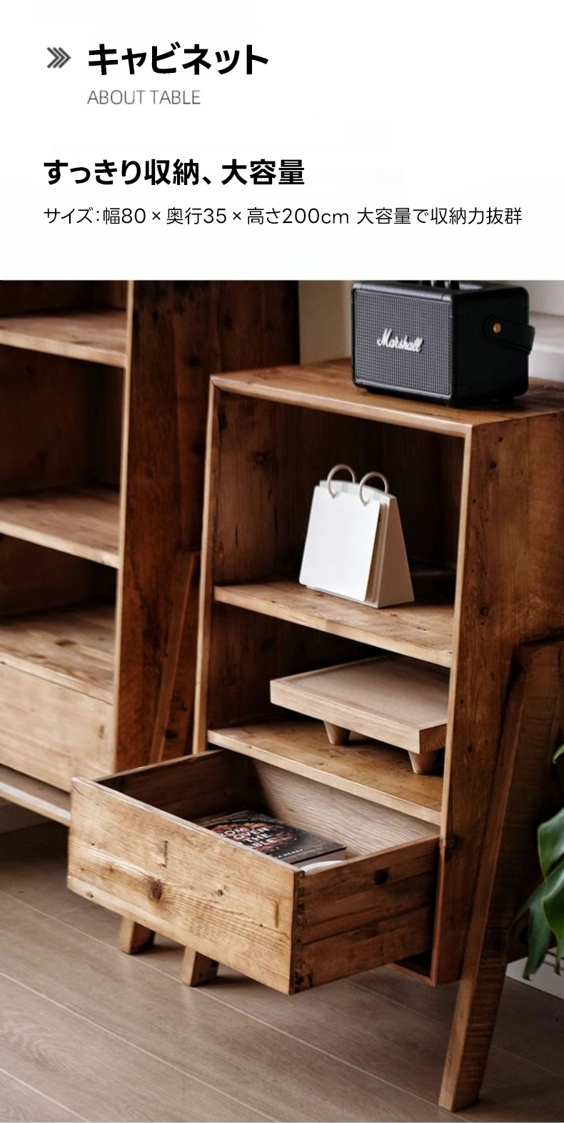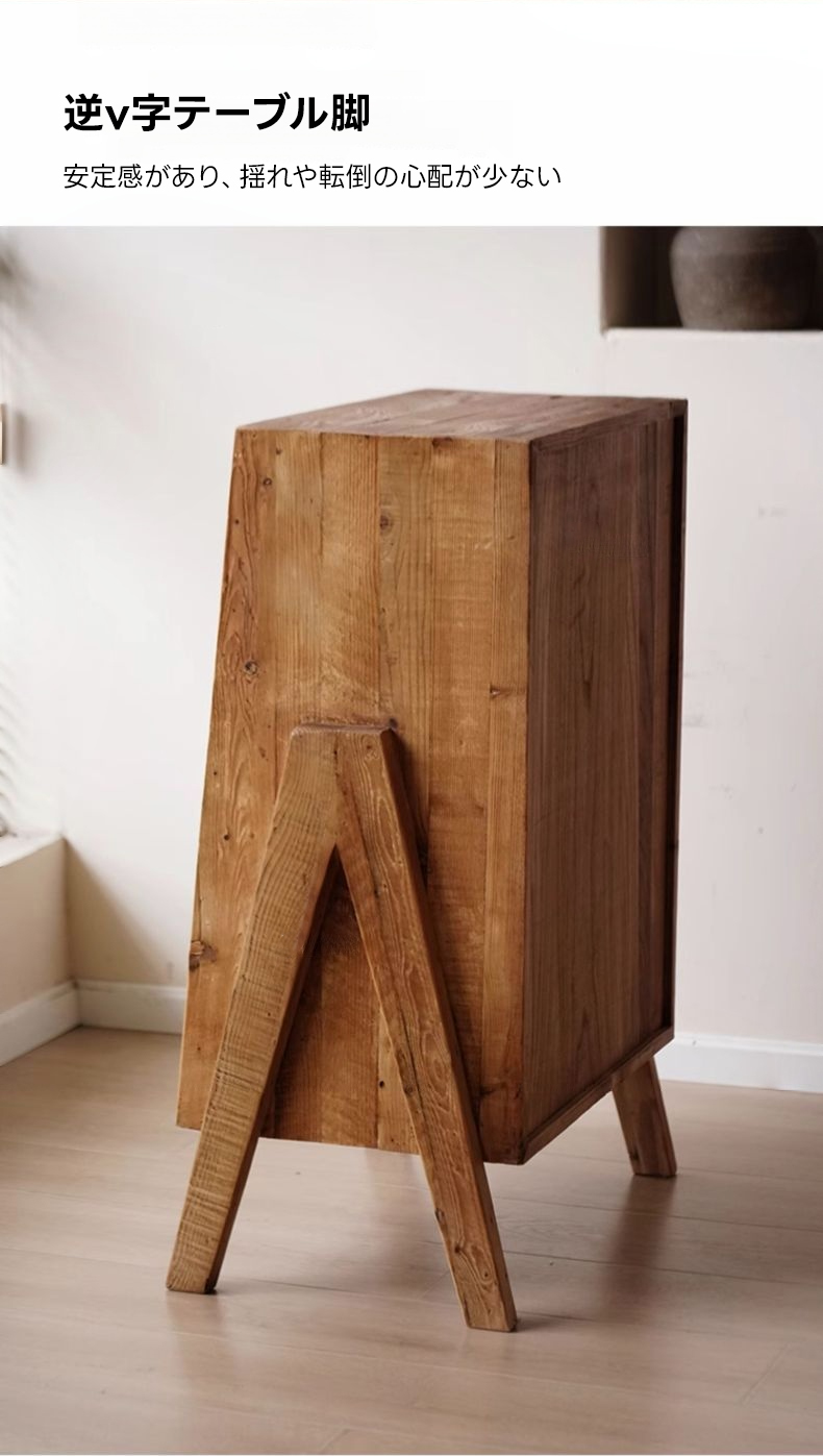 - 【多機能収納&安定性抜群】このビンテージパインキャビネットは、効率的な収納スペースを提供し、逆V字型の脚が安定感を確保します。リビングや書斎での使用に最適で、揺れや転倒の心配が少ない設計です。
