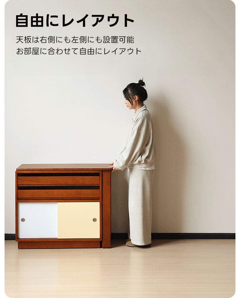 - 【多様な設置場所に対応】コンパクトな幅80cm、奥行き40cmの設計で、限られたスペースでも設置可能です。寝室やリビングなど、様々なインテリアにマッチし、一人暮らしの方やカップル、ファミリーに最適です。天板は伸縮自在で、L字型にも設置可能です。
