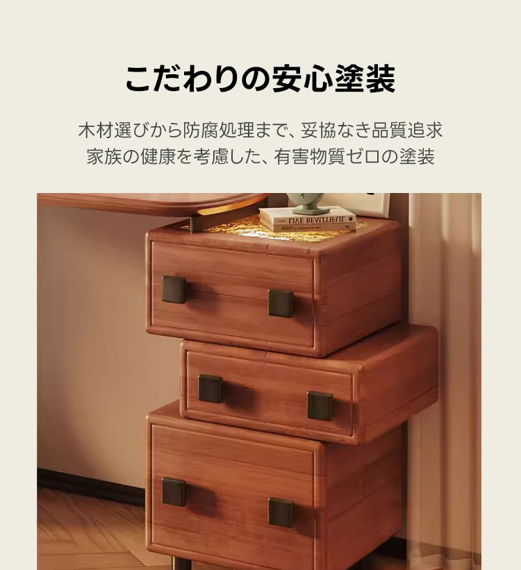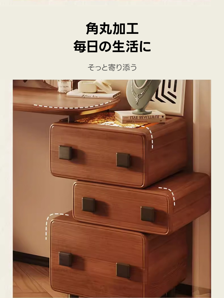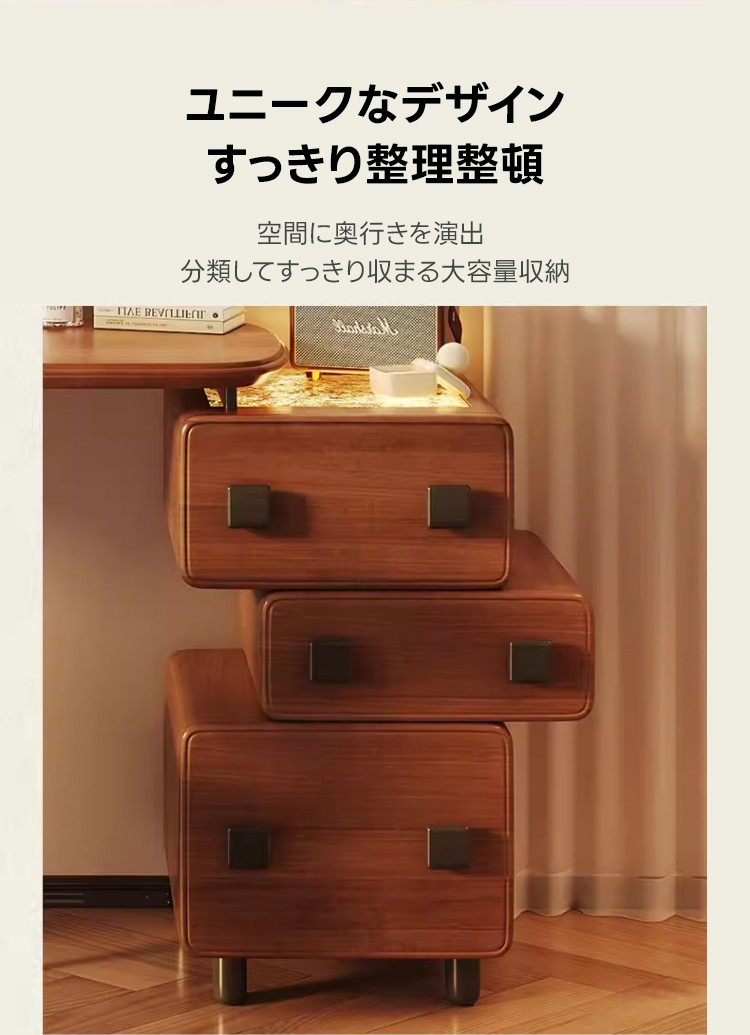 - 【大容量引き出しで機能性抜群】:3つの大容量引き出しを備え、化粧品やアクセサリーをすっきりと収納可能。静音スライドレールを採用しており、開閉がスムーズで、毎日の使用にストレスを感じさせません。