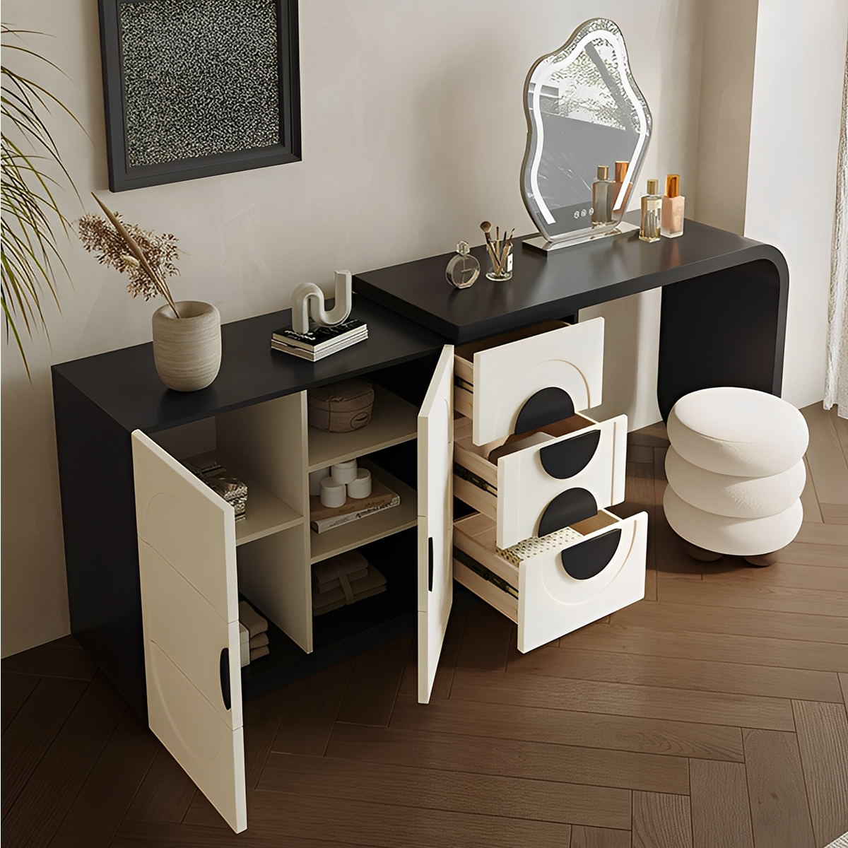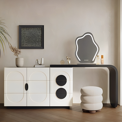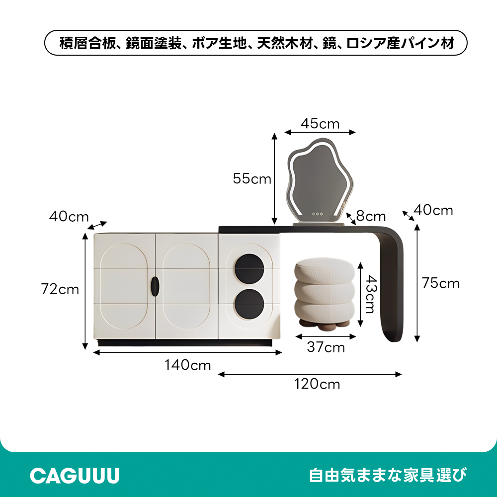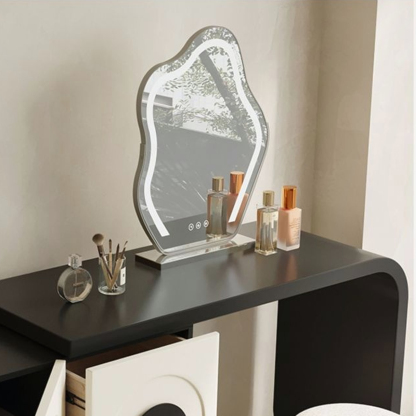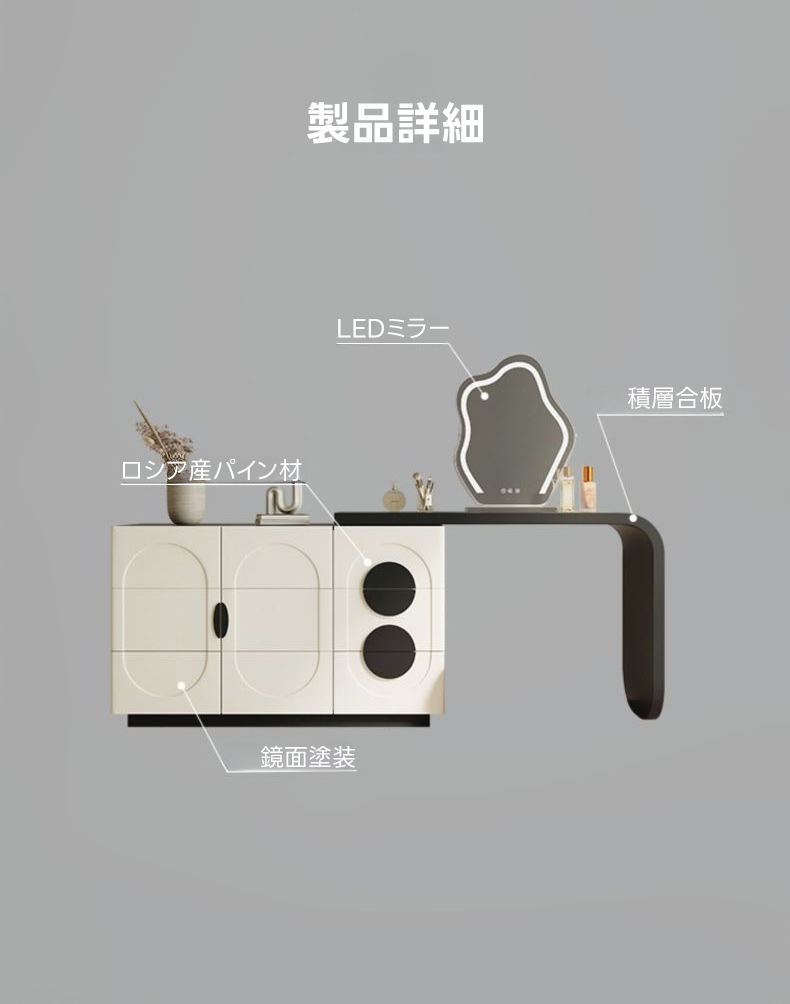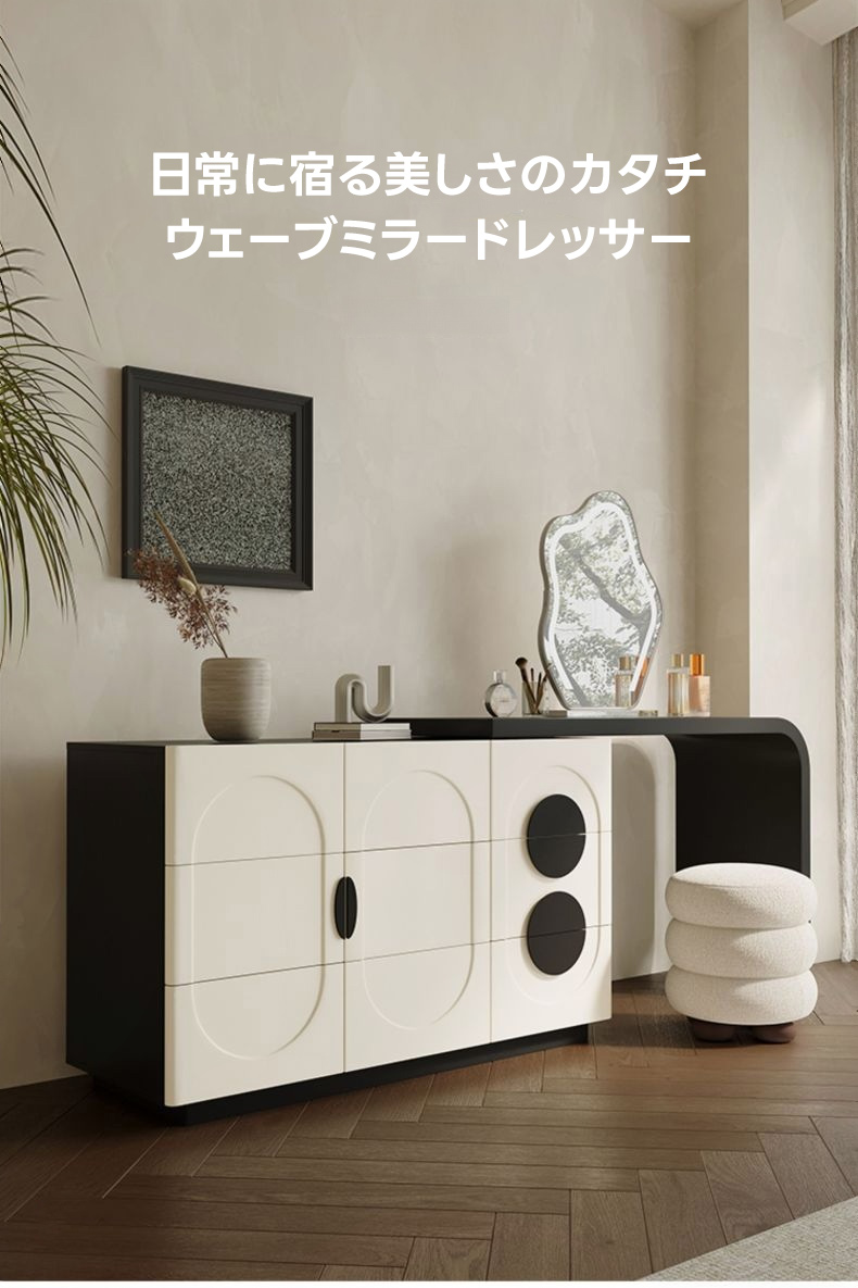 - 【波形ミラーとLEDライトの融合】ウェーブミラードレッサーは、独特な波形ミラーと調整可能なLEDライトを組み合わせ、化粧やスキンケアをより楽しく快適にします。明るさの調整が可能なLEDライトは、時間帯や気分に合わせて最適な照明を提供します。