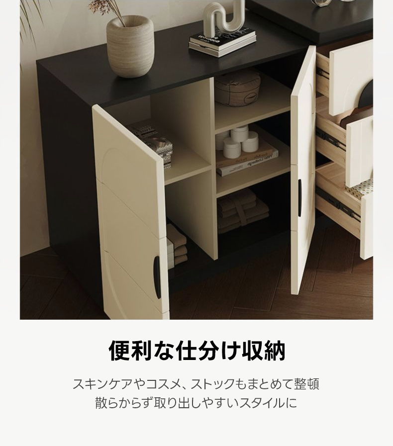 - 【大容量収納で整理整頓】大容量の収納スペースを備え、スキンケア用品や化粧品をすっきりと整理できます。引き出しはサイズを問わず、様々なアイテムを収納可能で、日常の使い勝手を向上させます。