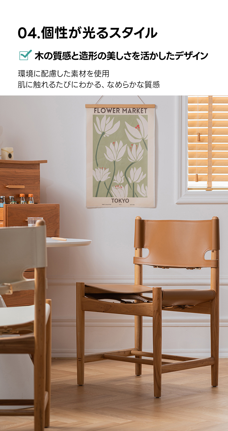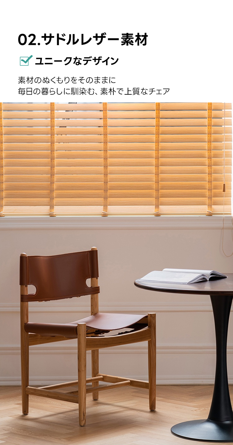 - 【優れたデザインと快適さ】ヴィンテージ感溢れるサドルレザーと天然木のフレームが、ダイニングルームに高級感を演出します。快適な背もたれと座面が、長時間の使用でも疲れにくい設計です。