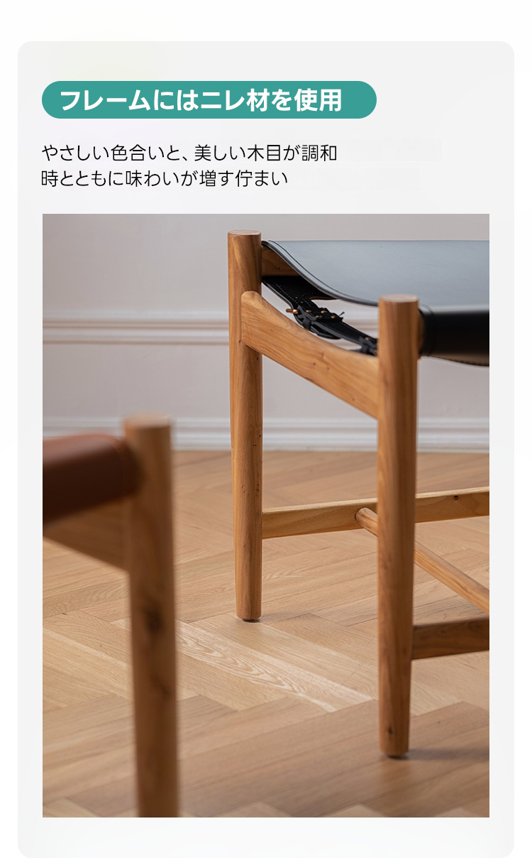 - 【高品質な素材】天然木のフレームとしなやかなサドルレザーを使用し、耐久性と美しさを兼ね備えています。エコフレンドリーな素材で、環境にも優しい選択です。