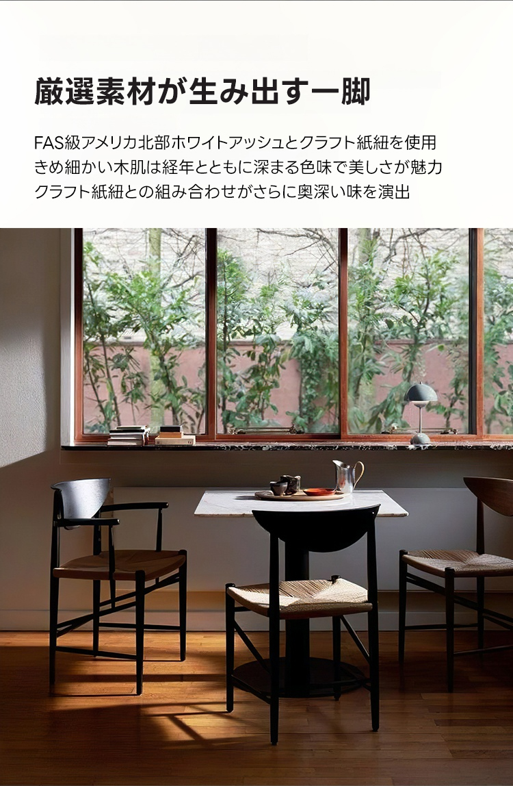 - 【高品質な素材とデザイン】ミッドカーブチェアは、FAS級ホワイトアッシュ材を使用し、木目の美しさが際立つデザインです。クラフト紙紐で編み込まれた座面は、耐久性と快適さを兼ね備えています。ヴィンテージ感漂うデザインで、どんなインテリアにもマッチします。