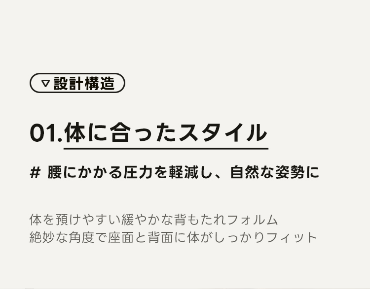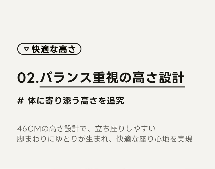 - 【人間工学に基づいたデザイン】背もたれの形状は体にフィットしやすく、腰への負担を軽減。座面の高さは46cmで、立ち座りがしやすい設計です。