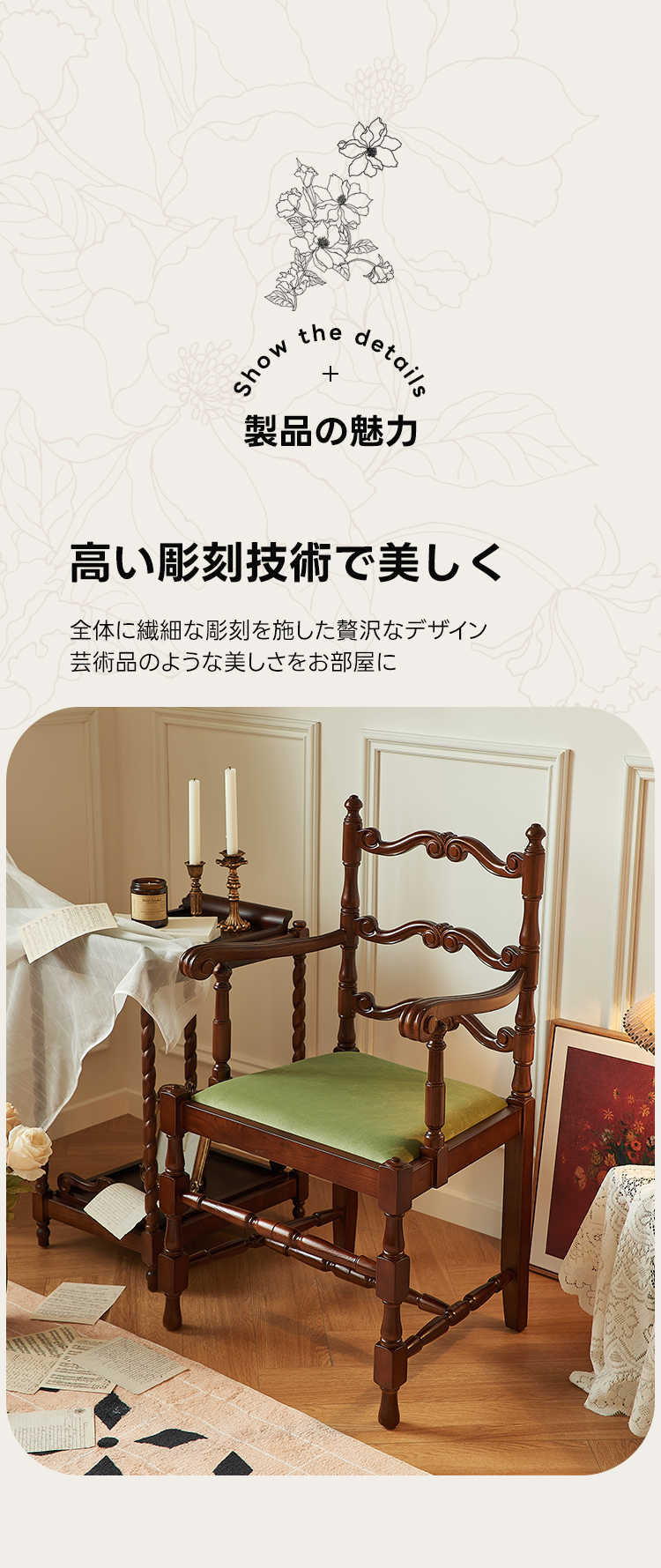 - 【クラシックなデザインと現代の快適さ】:ヨーロピアンヴィンテージチェアは、クラシックなデザインに現代の快適さを融合させた逸品です。ヴィンテージ感漂うデザインが、どんなインテリアにも優雅に溶け込みます。