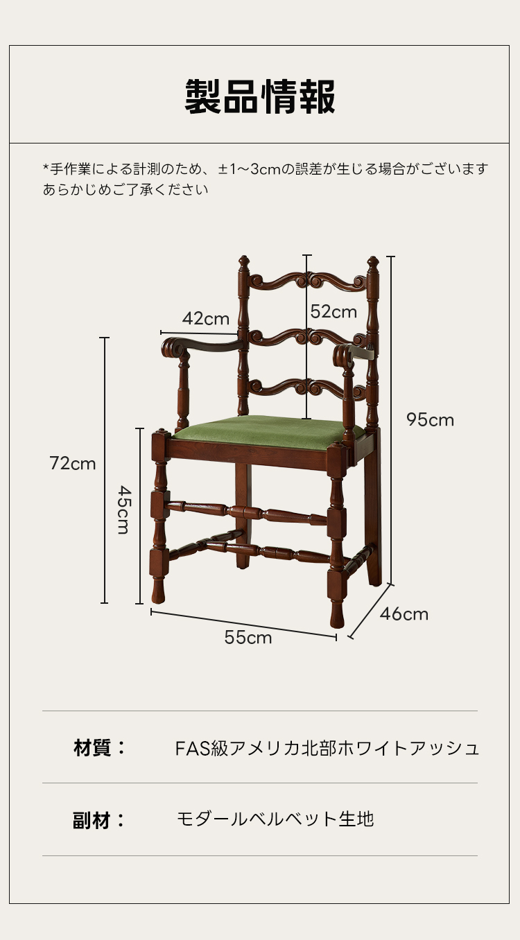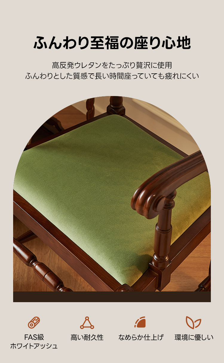- 【高品質な素材とデザイン】:FAS級のアメリカ北部ホワイトアッシュ材を使用し、モダールベルベットの座面が高級感を演出。美しい木目と耐久性が特徴で、長くお使いいただけます。
