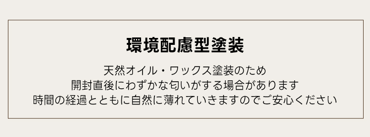 - 【安心のアフターサービス】:環境配慮型の天然オイル・ワックス塗装が施されており、開封直後にわずかな匂いがする場合がありますが、時間とともに自然に薄れていきますのでご安心ください。