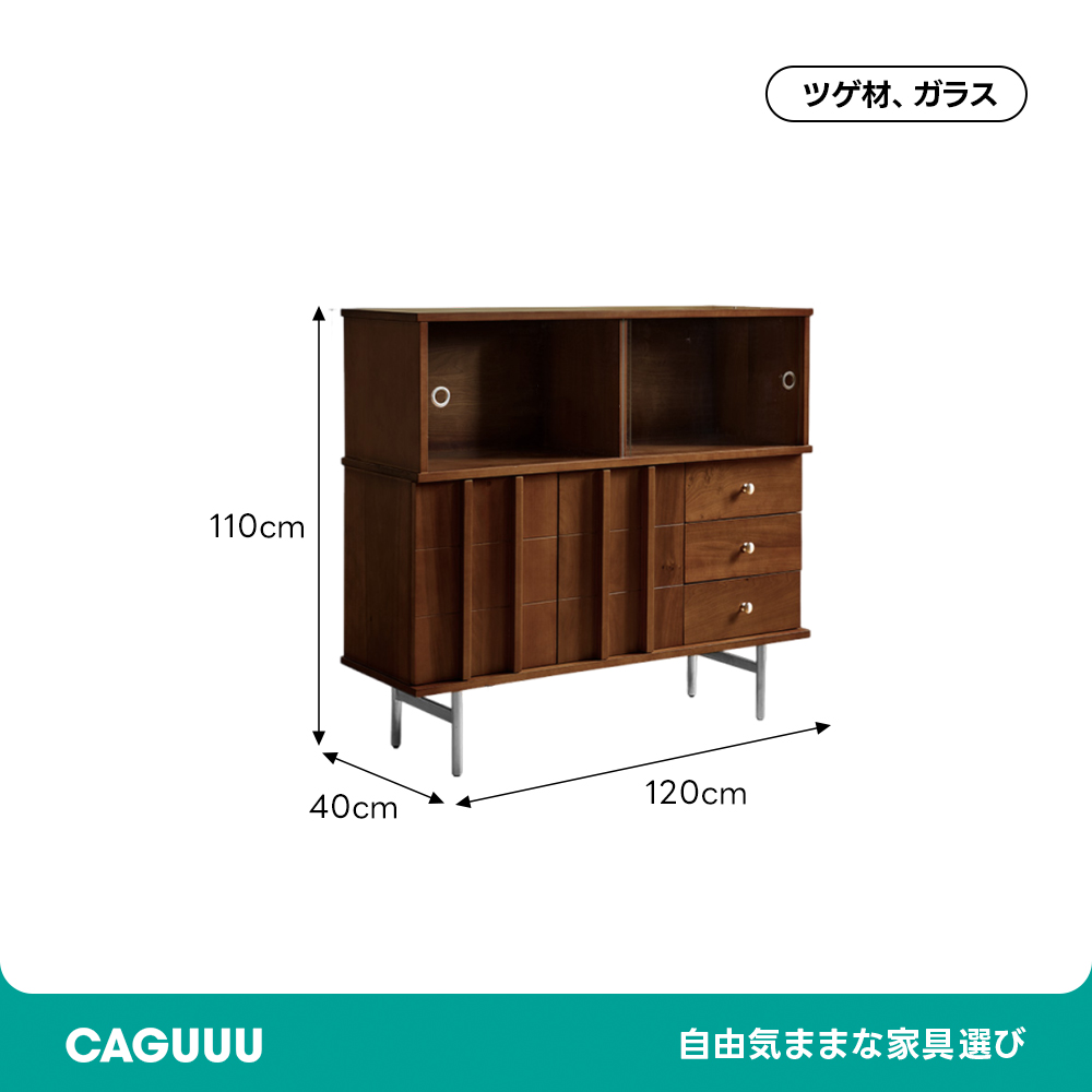 - 【大容量収納スペース】:ナチュラルスリットキャビネットは、高さ110cm、幅120cm、奥行き40cmの広々とした収納スペースを提供します。ガラススライド扉と引き出しが付いており、整理整頓が簡単に行えます。ダイニングやリビング、さらにはレストランやサロンでも活躍する多用途なデザインです。