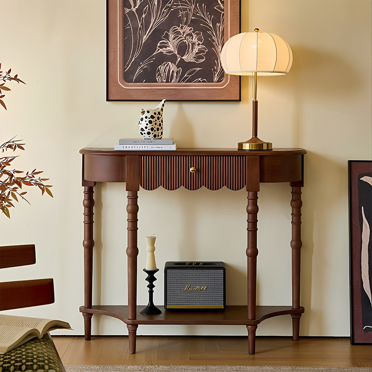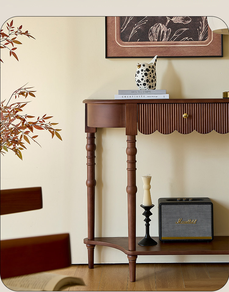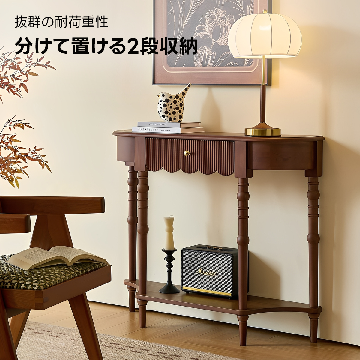 - 【多様な適用シーン】玄関やエントランスに最適なこのテーブルは、ナチュラルなダークブラウンの色合いがどんなインテリアにも調和し、一人暮らしからファミリーまで幅広く対応可能です。