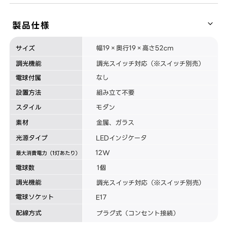 - 【ユーザーに優しい設計】組み立て不要で、電源コードにON/OFFスイッチが付いているため、すぐに使用可能。最大消費電力は12Wで、電球ソケットはE17タイプ。別途購入が必要ですが、簡単に取り付けられます。
