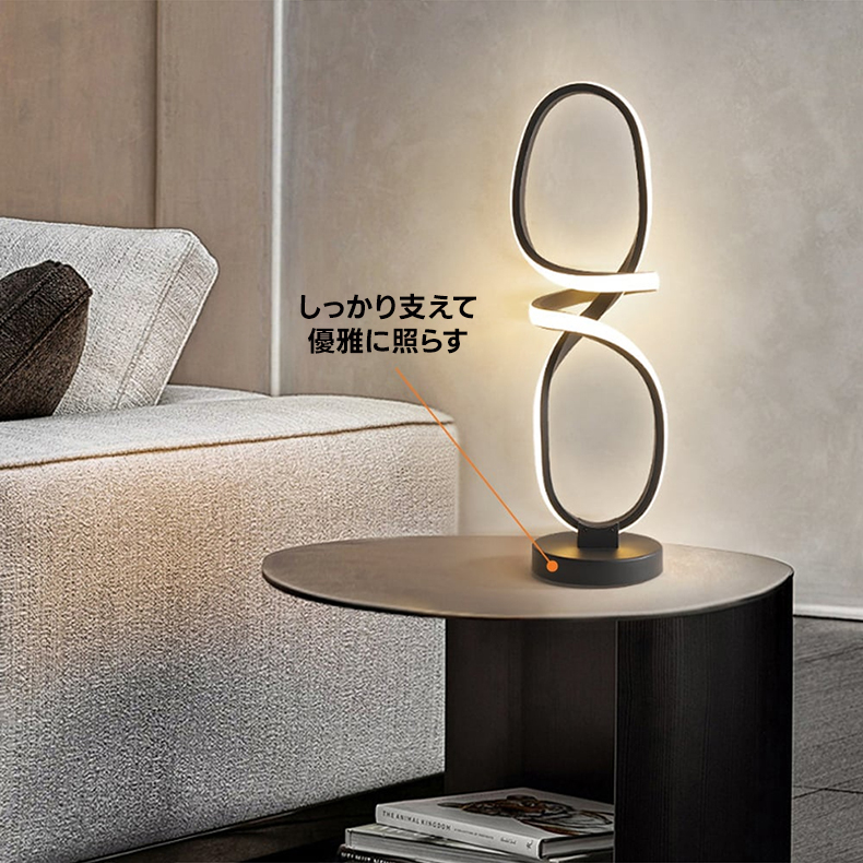 - 【シンプルでモダンなデザイン】:スパイラルモダンテーブルライトは、シンプルでありながらモダンなデザインが特徴です。幾何学的で不規則な形状が視覚的なアクセントを加え、どんなインテリアにも調和します。