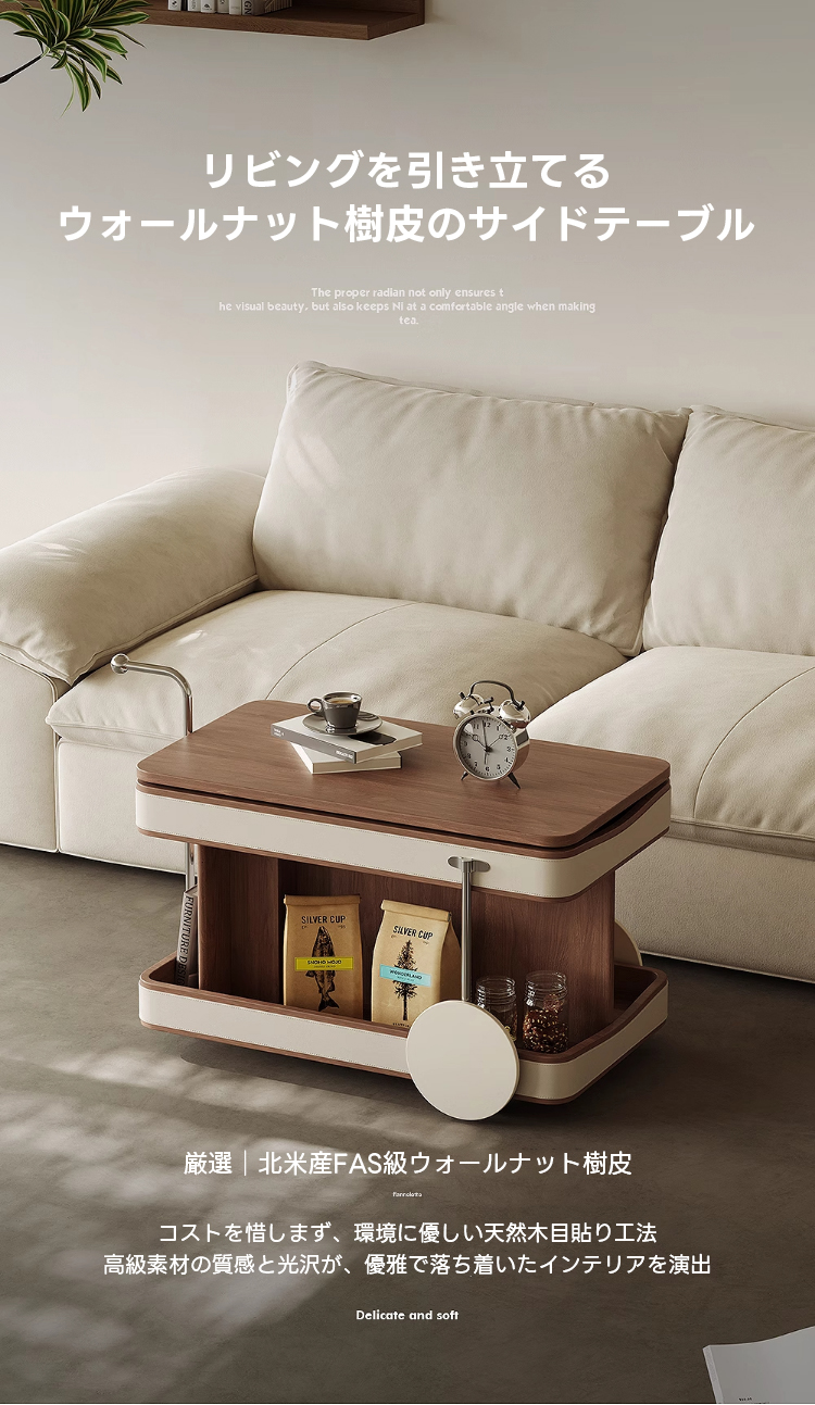 - 【多機能な昇降機能】:キャスター付き昇降サイドテーブルは、テーブルの高さを自由に調整可能です。リビングや寝室など、様々なシーンで快適に使用でき、日常生活をより便利にします。