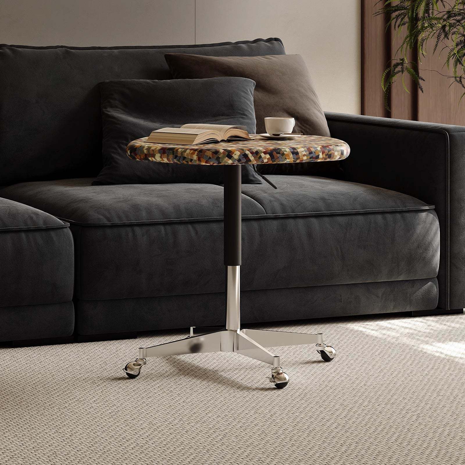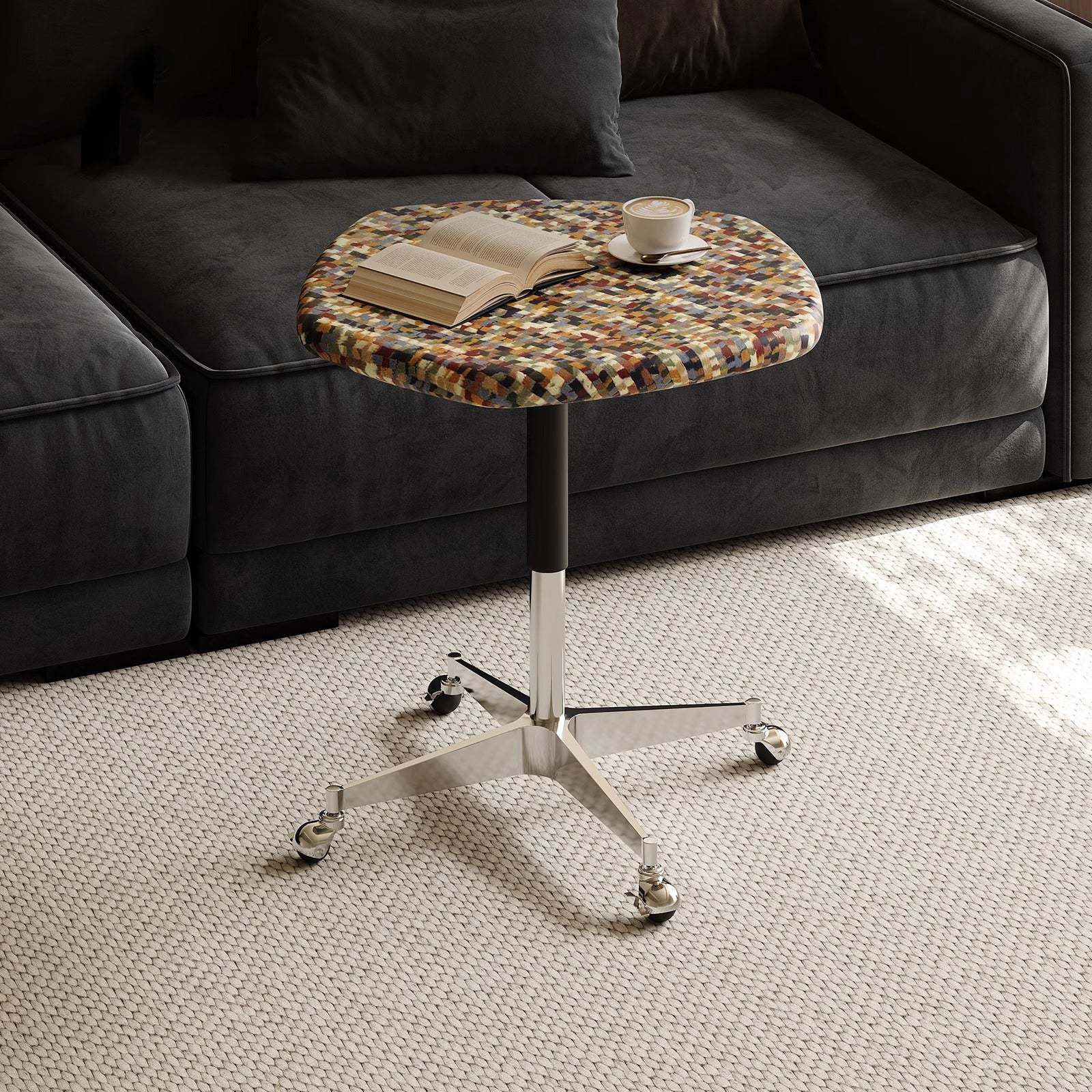 - 【サイズと機能性】テーブルのサイズは76cm x 73.5cmで、高さは59cmから85cmまで調整可能です。不規則な形状が個性的で、空間に遊び心を加えます。カラフルなウッド天板が視覚的なアクセントとなり、部屋のインテリアに個性をプラスします。