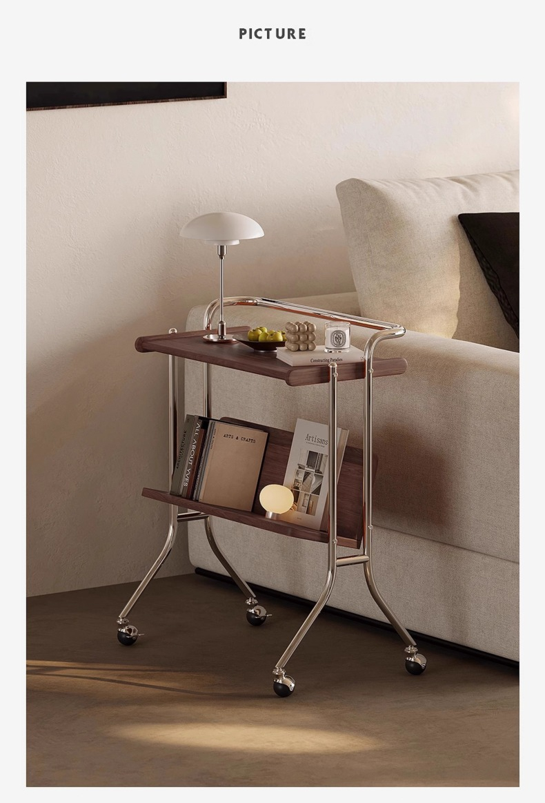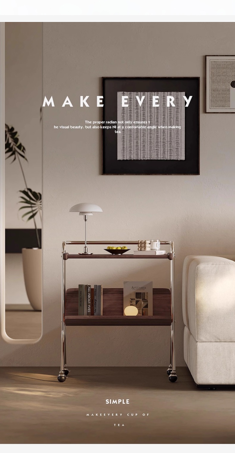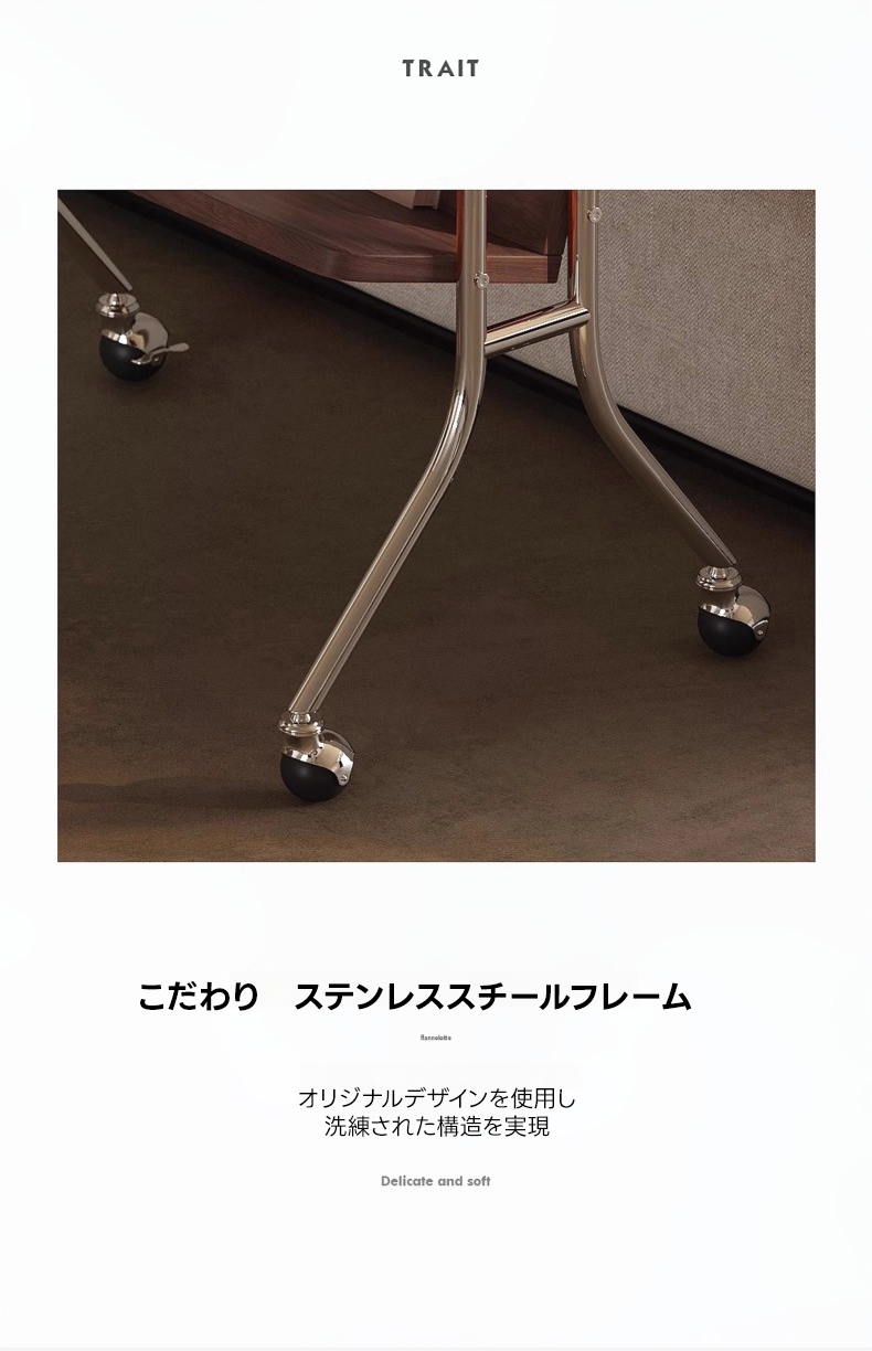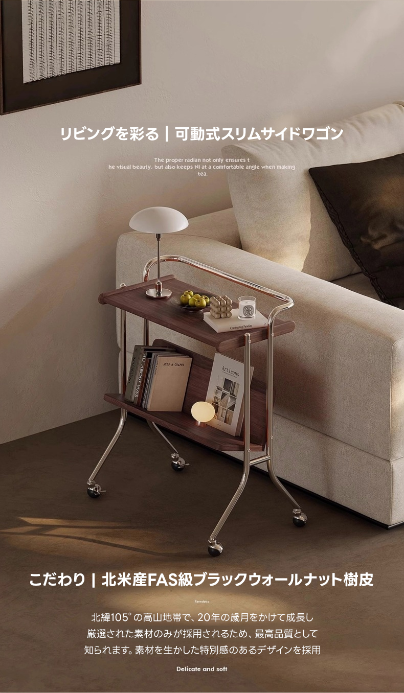 - 【高品質な素材とデザイン】北米産FAS級ブラックウォールナットを使用し、深みのあるブラウンが温かみを演出します。ステンレススチールフレームとアルミ合金キャスターを採用し、耐久性と安定性を兼ね備えたデザインです。ヴィンテージ感あふれる不規則な形状が魅力的です。